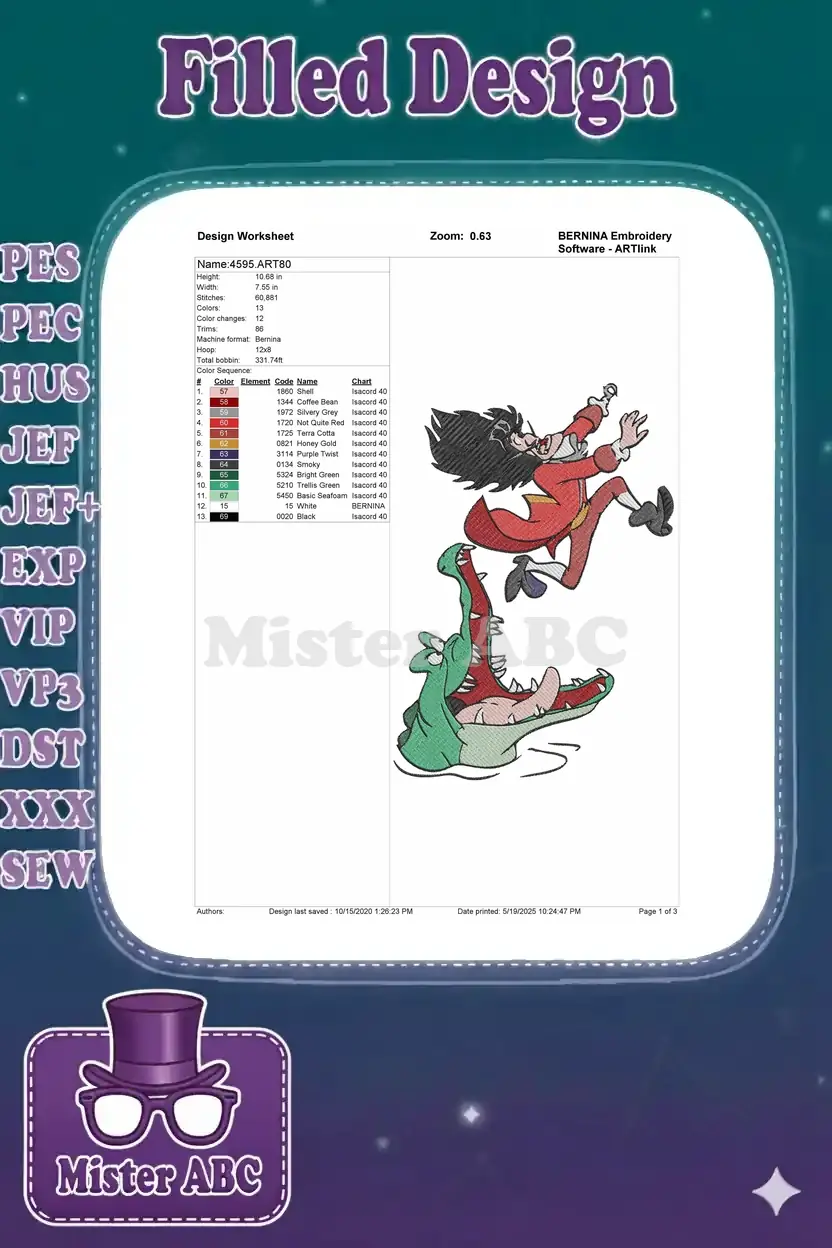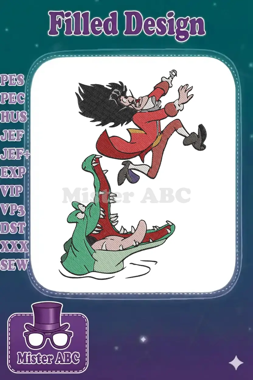 Disney Captain Hook Fleeing Tick-Tock Crocodile Machine Embroidery Designs