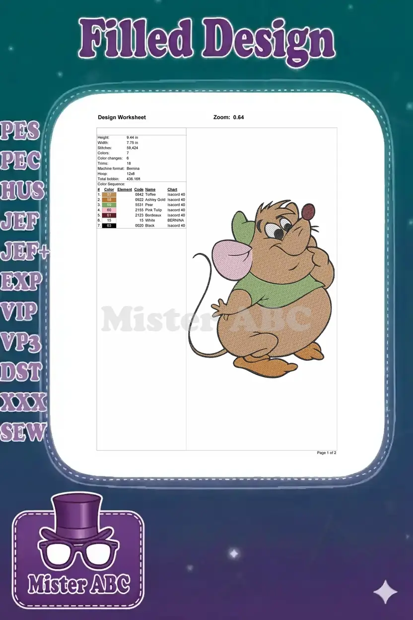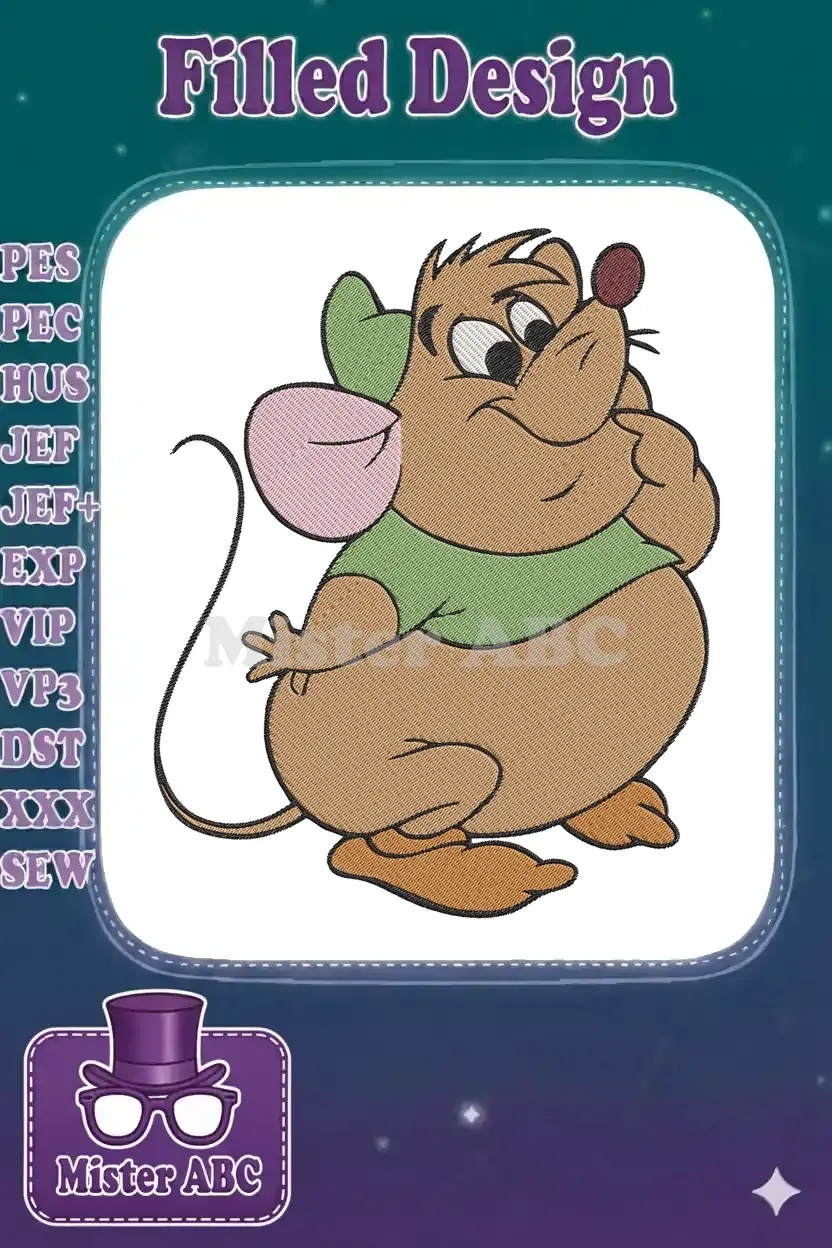 Disney Cinderella Gus mouse character cartoon embroidery designs