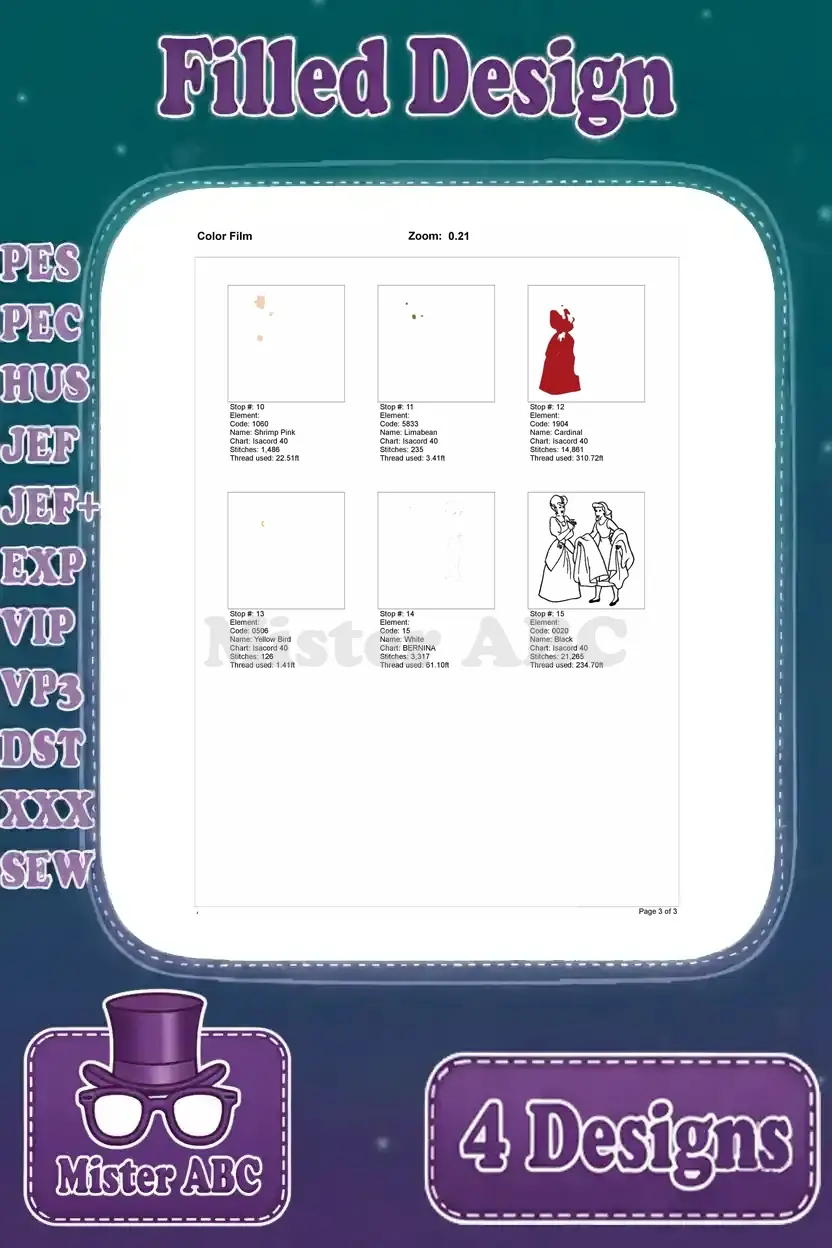Disney Cinderella Stepsisters Dancing With Prince Charming Lady Tremaine Ball – Filled Embroidery Design