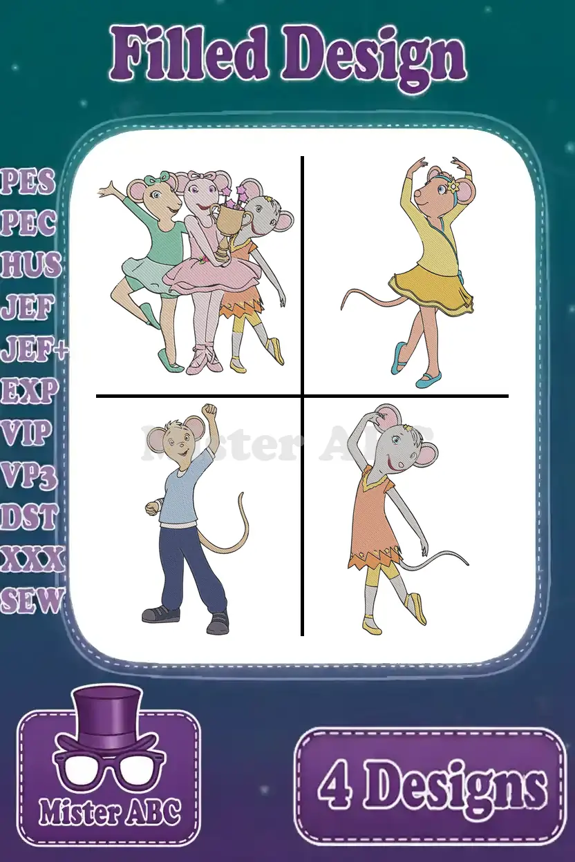 Disney Classic Animation Mice Ballerinas Pner Dancing Duets Performance Bundle – Filled Embroidery Design