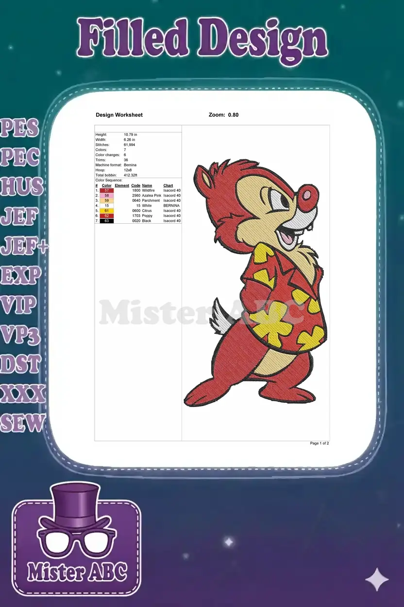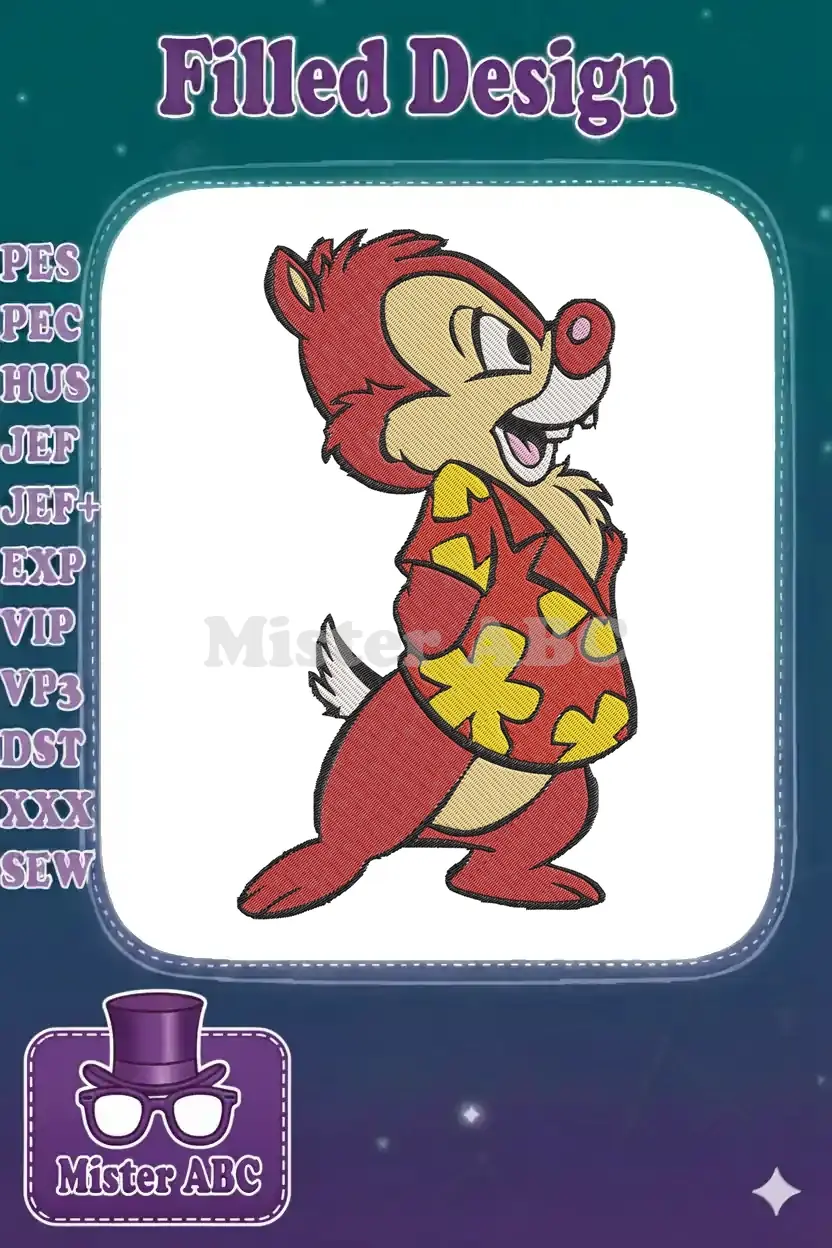 Disney Dale Chipmunk Red Hawaiian Shirt Embroidery Designs