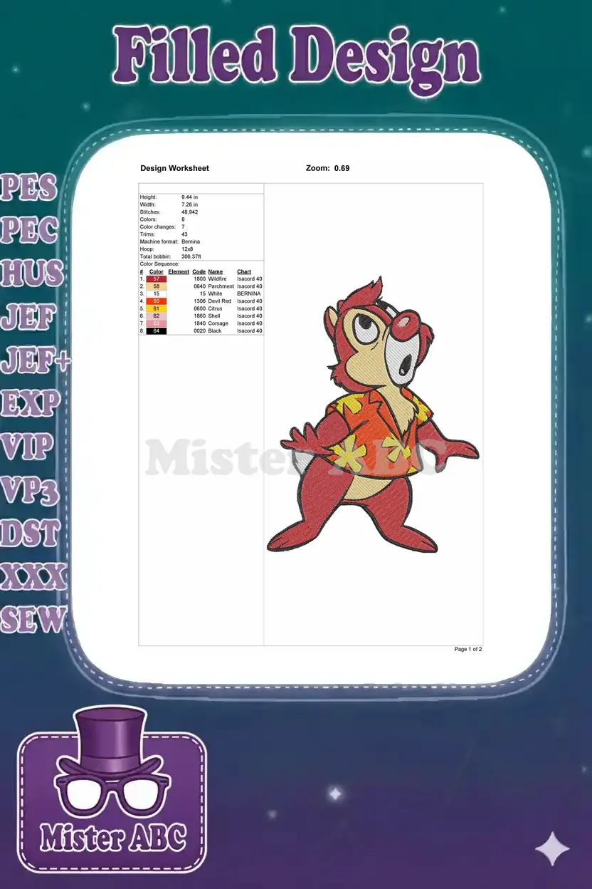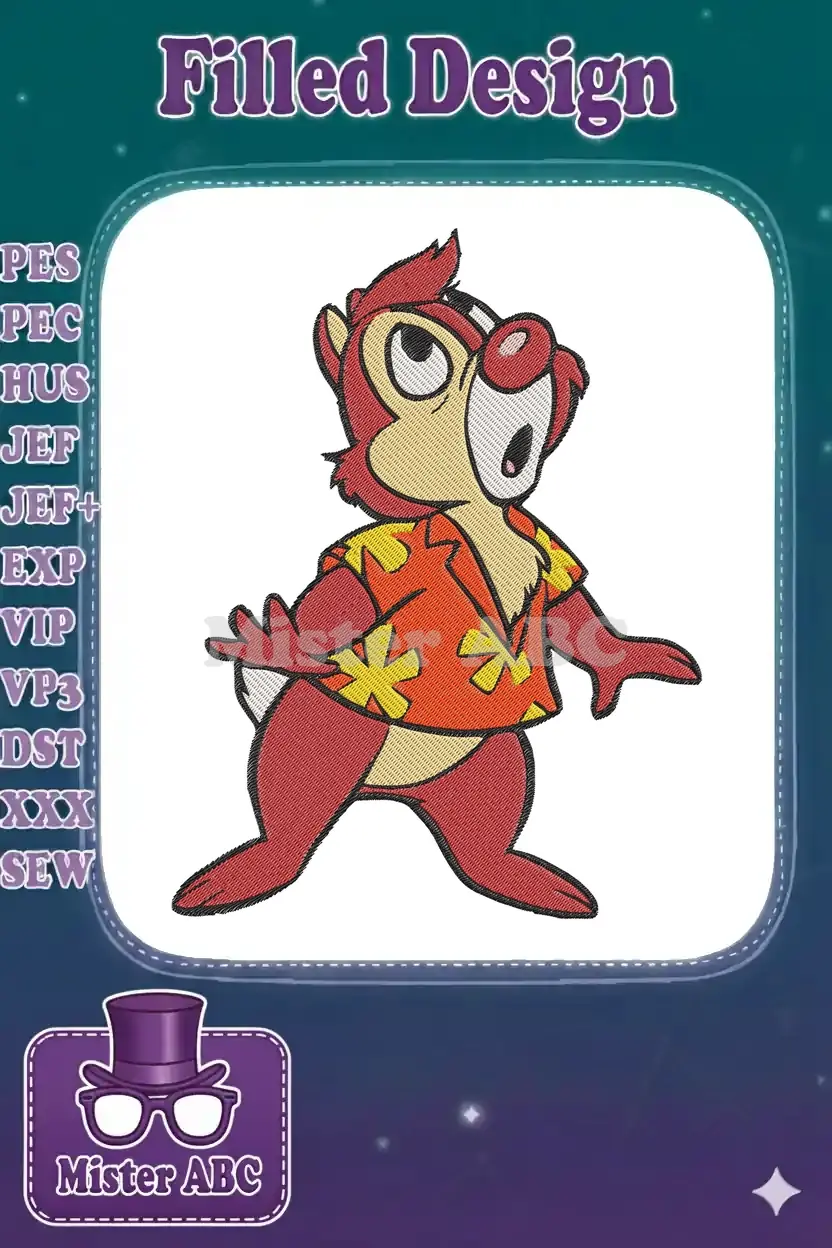 Disney Dale in Hawaiian Shirt Surprised Embroidery Designs
