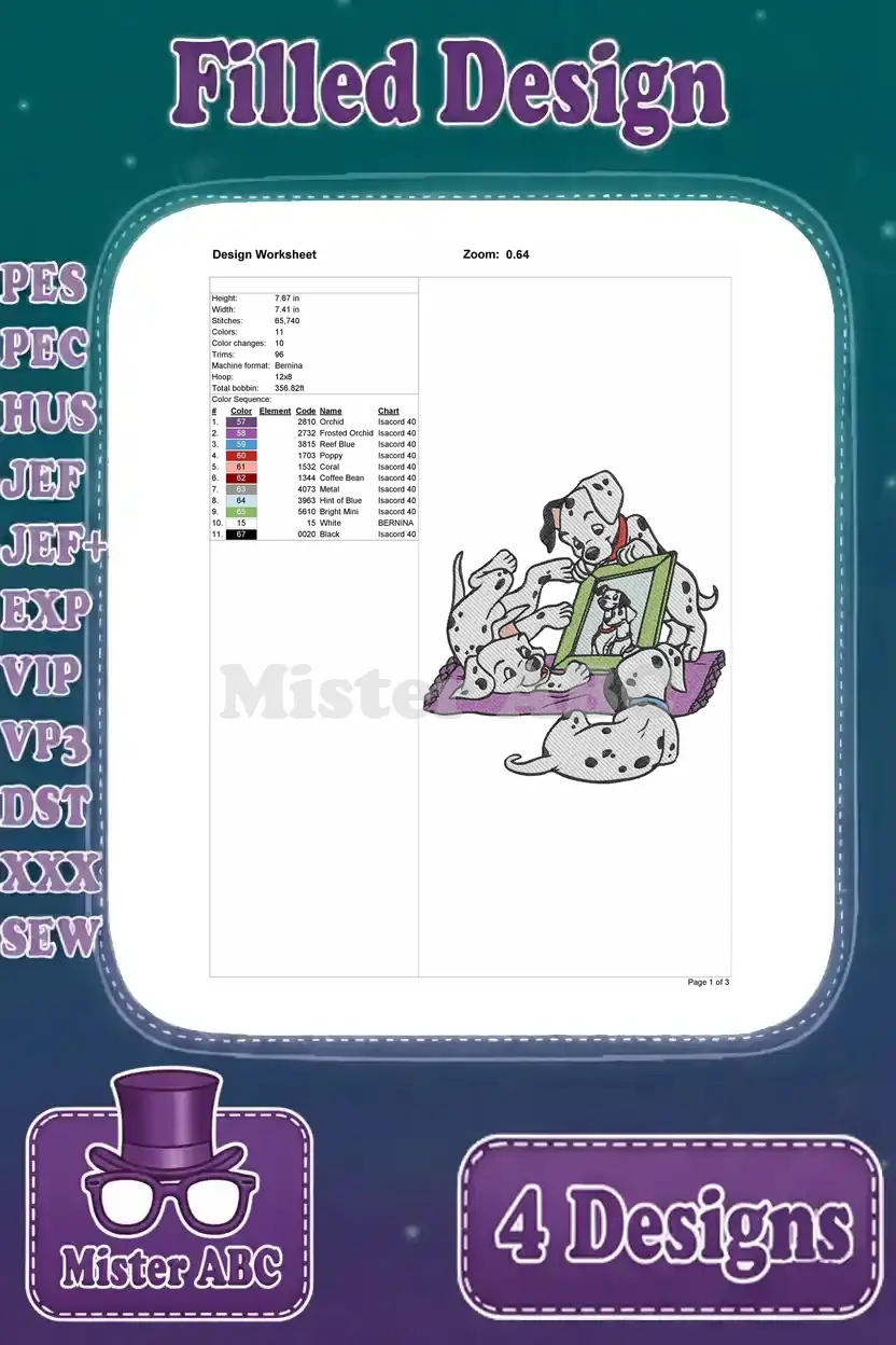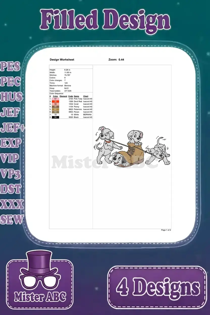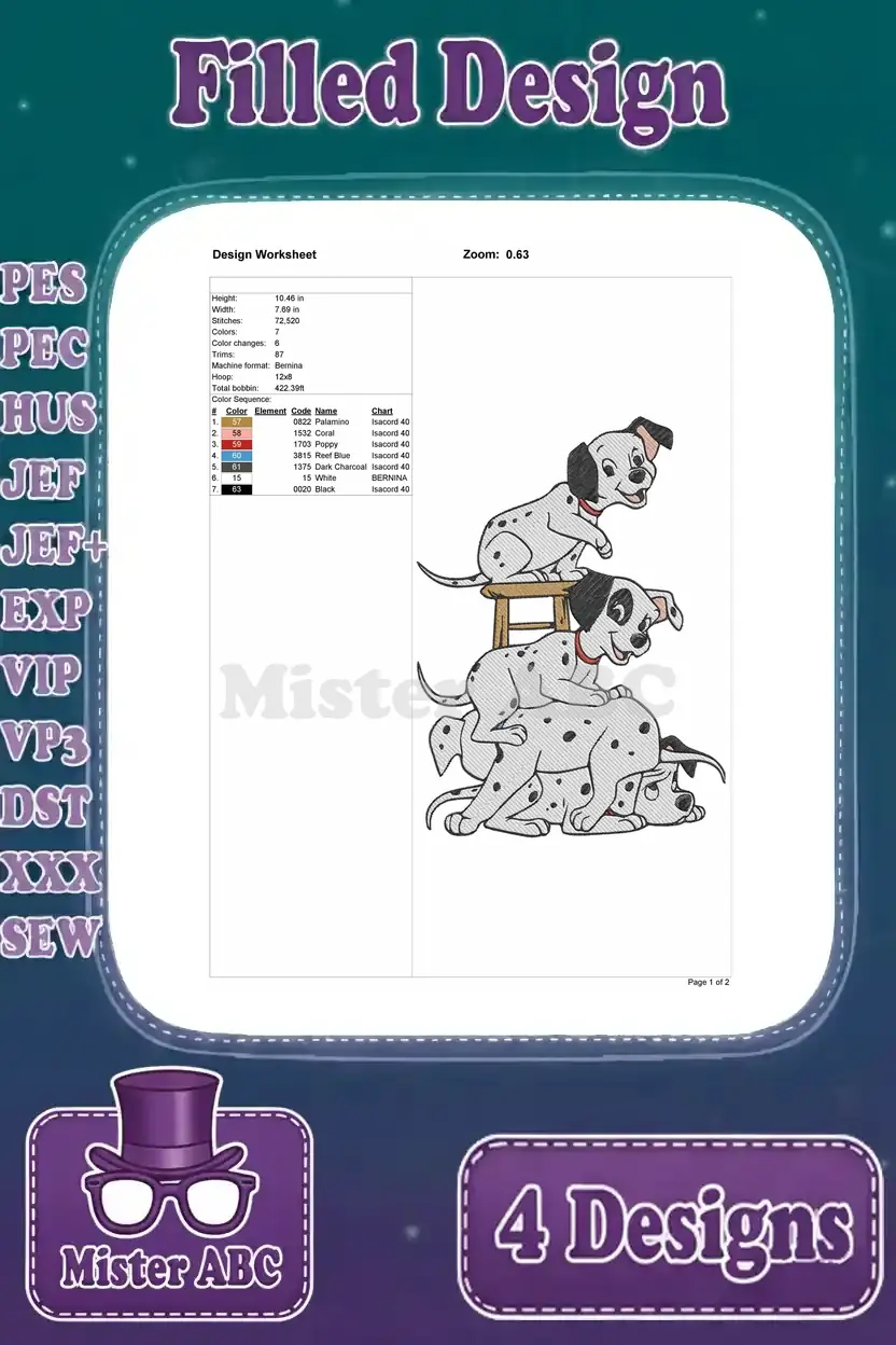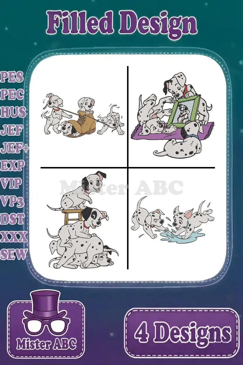Disney 101 Dalmatians Puppy Adventures Hiding In Boot Tv Time Bath Fun Splashing Designs – Filled Embroidery Design