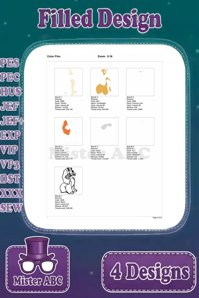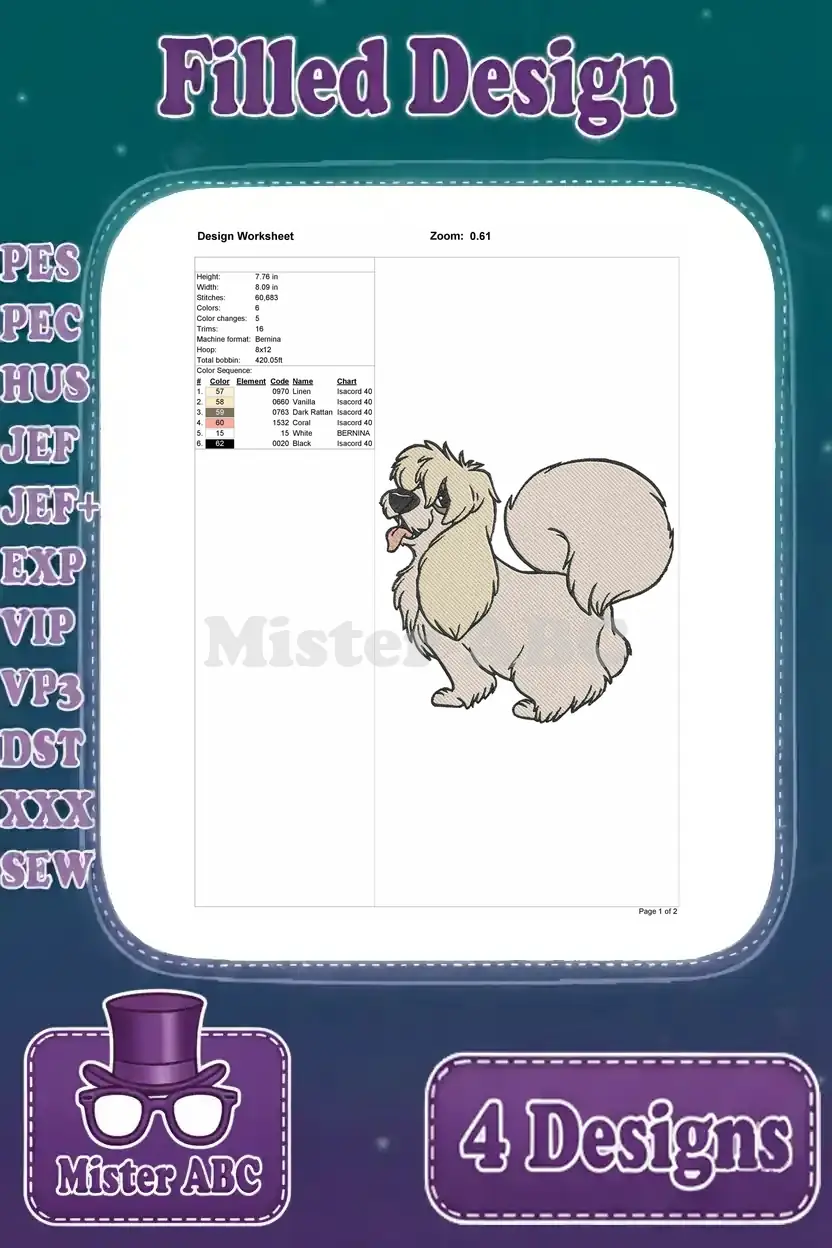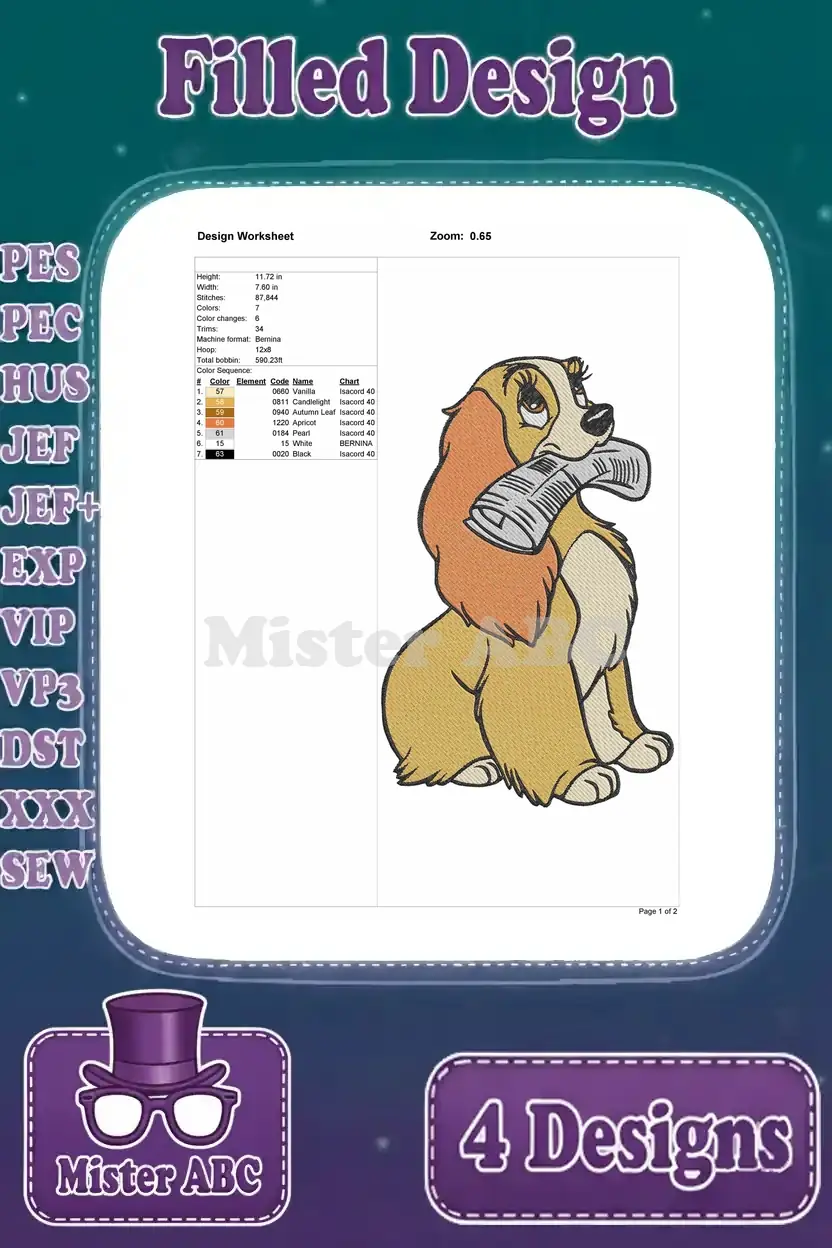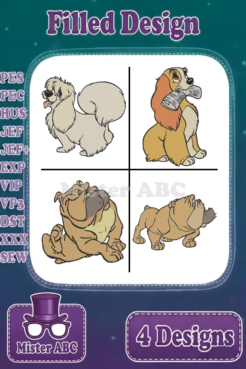 Disney Dogs – Lady With Bone Landt – Trusty Landt – Georgette Oliver And Co – Canine Friends – Filled Embroidery Design