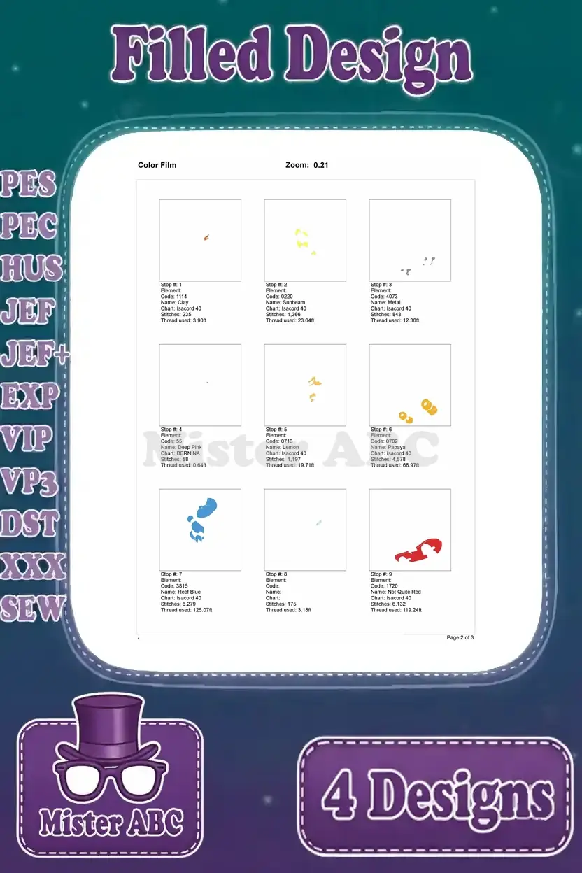 | Stitches | Colors | Thread Changes |
