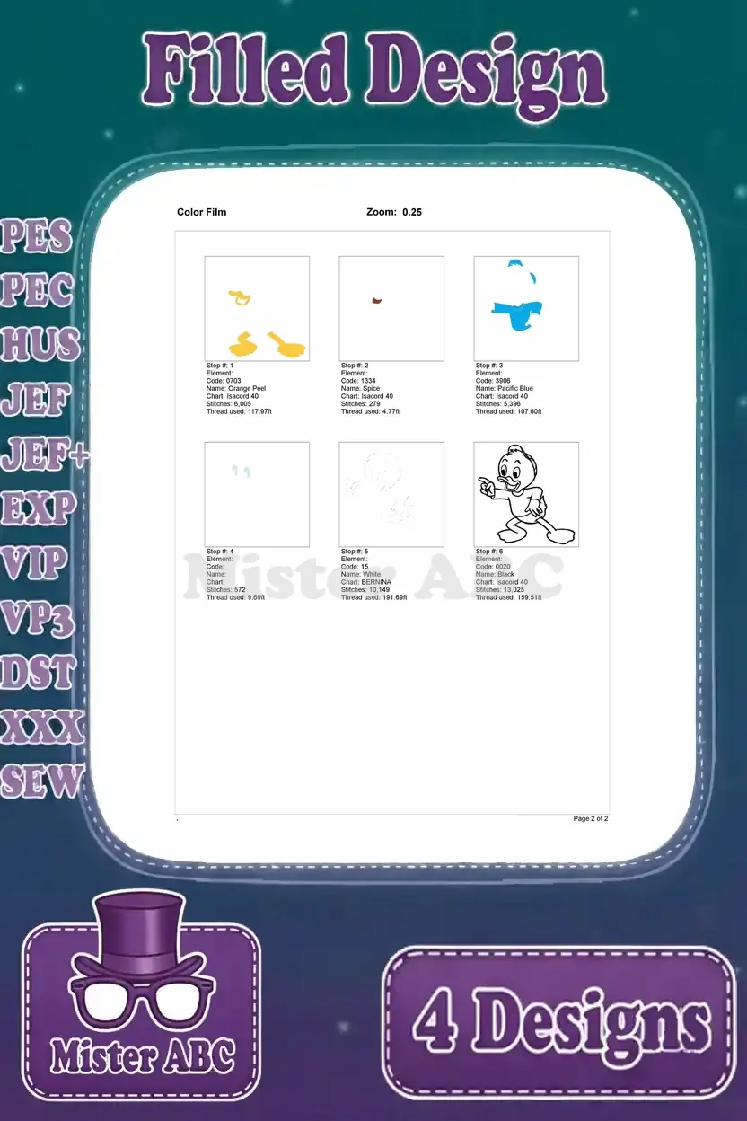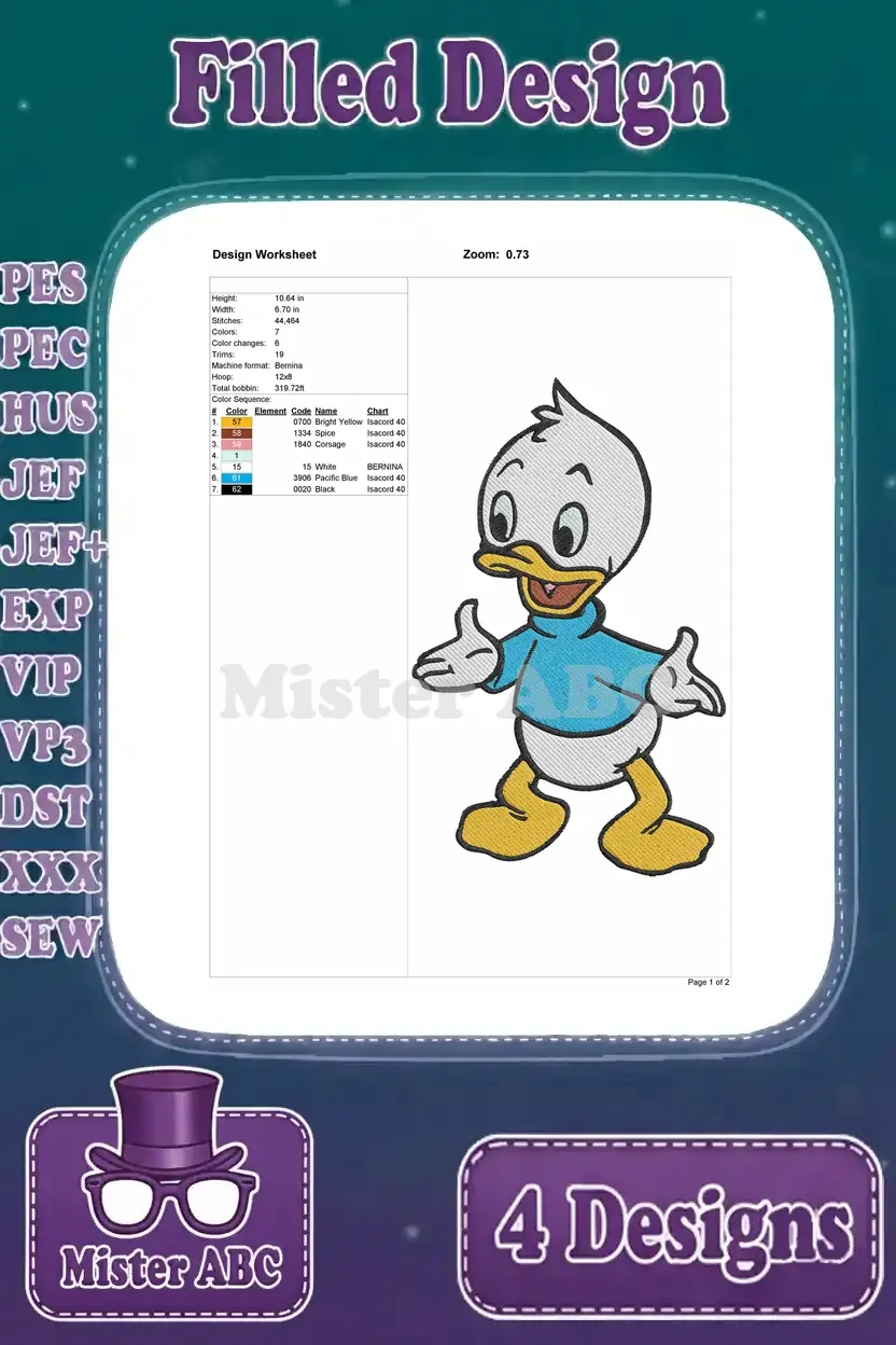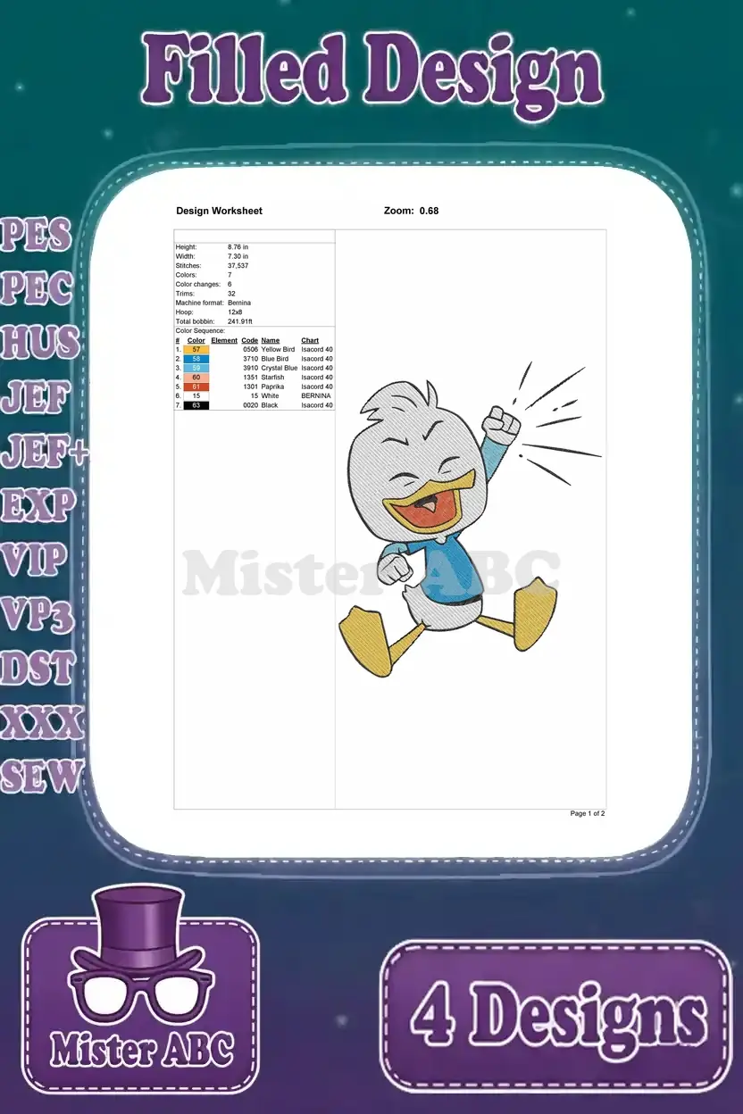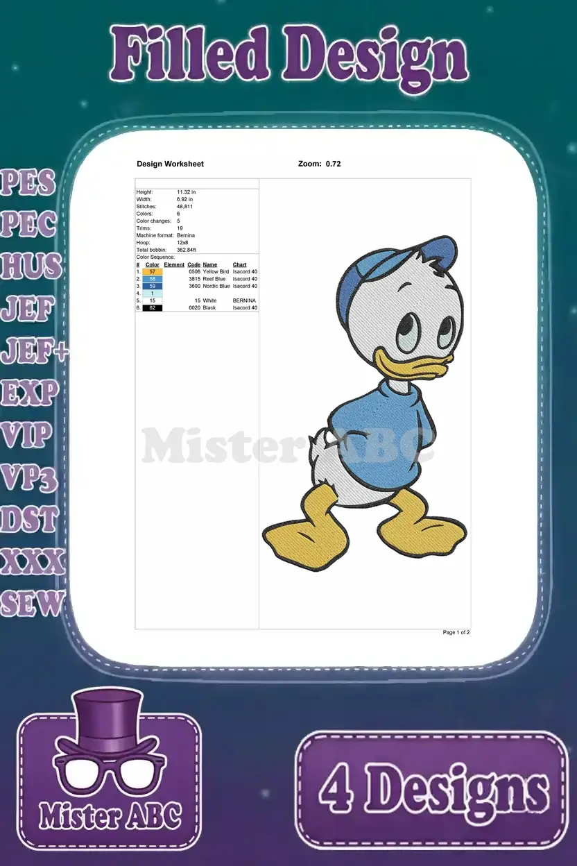 Disney Ducktales Huey Dewey Louie Duckling Poses Standing Pointing Running Surprised Collection – Filled Embroidery Design