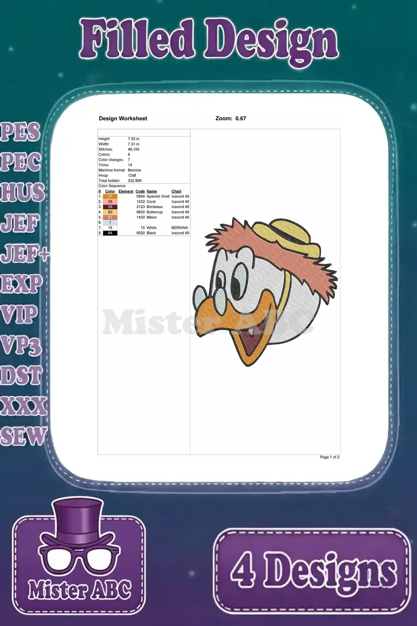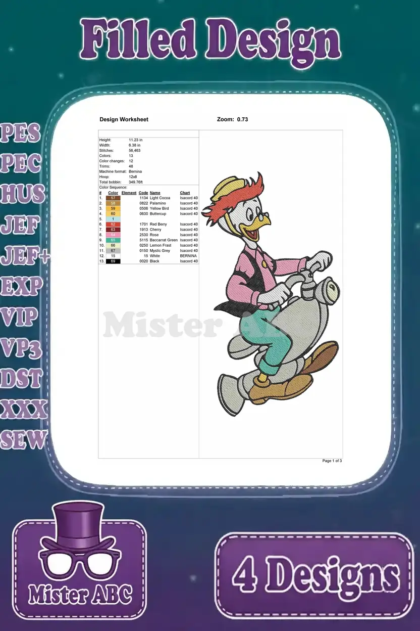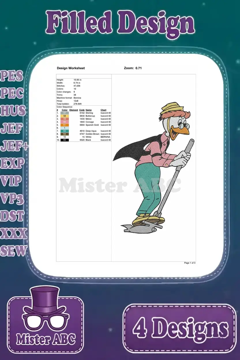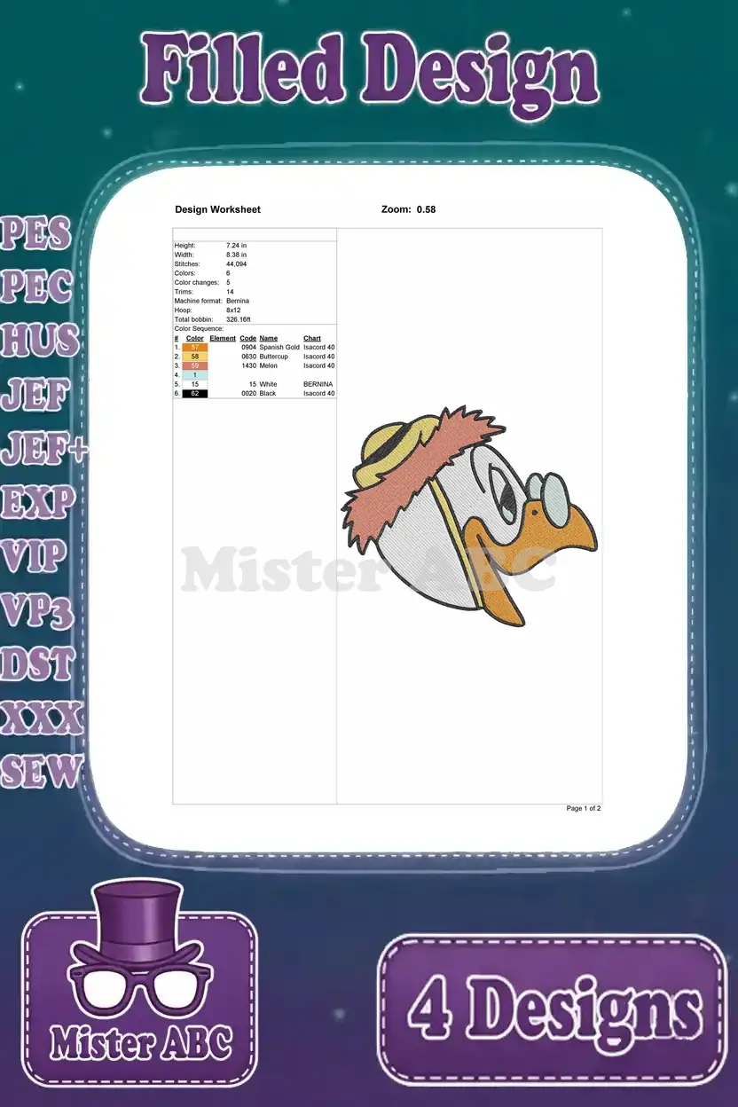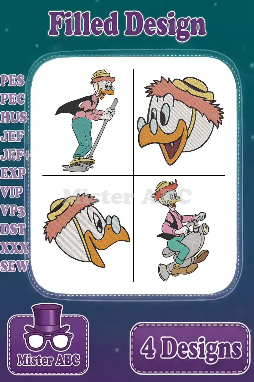 Disney Ducktales Launchpad Mcquack Pilot Poses Close Up Flying Plane Adventure Collection – Filled Embroidery Design