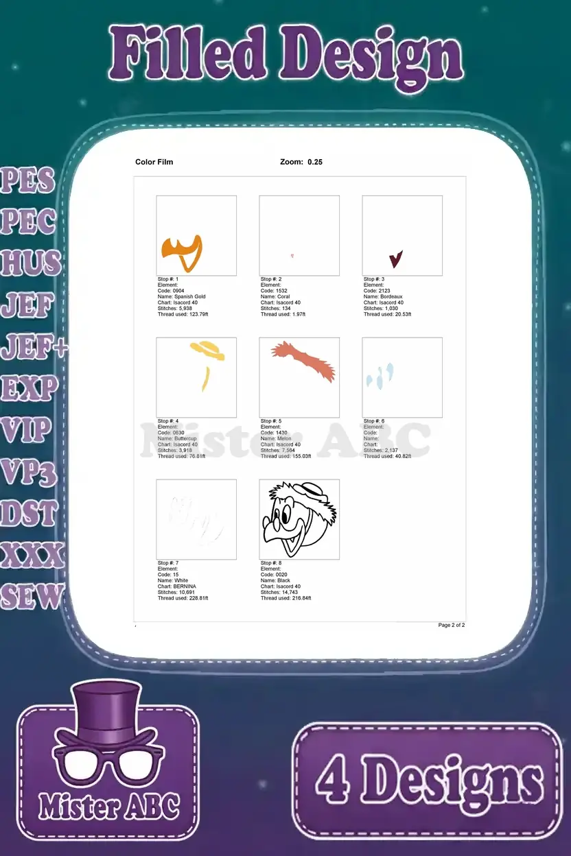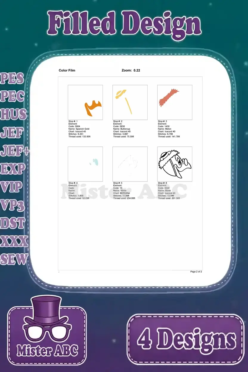 | Stitches | Colors | Thread Changes |