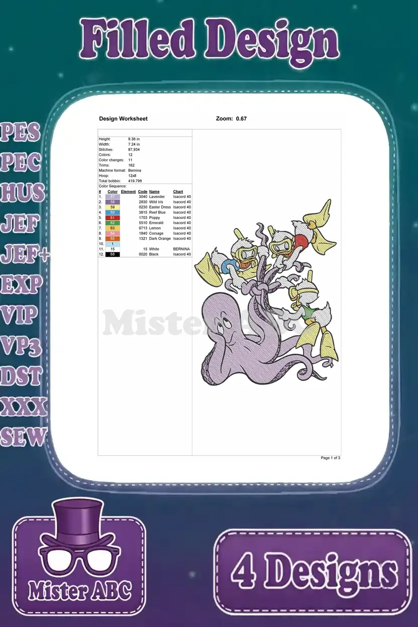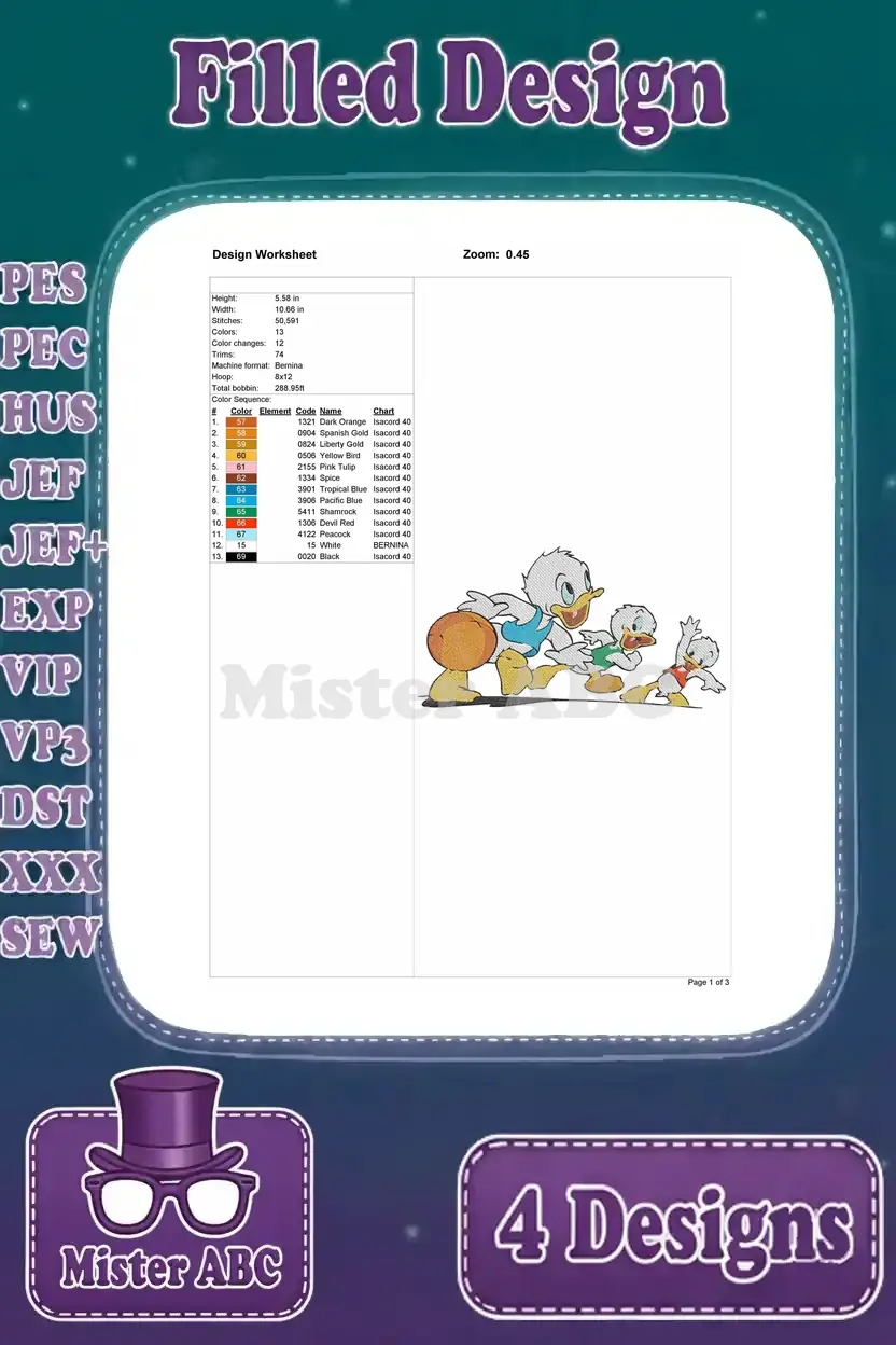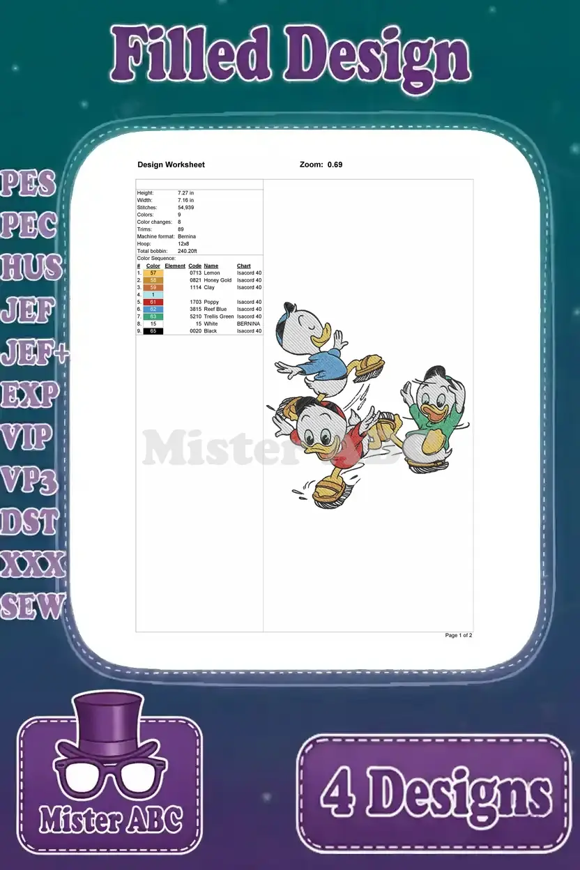 Disney Ducktales Nephews Gyro Gearloose Scooter Picnic Running Inventing Friends – Filled Embroidery Design