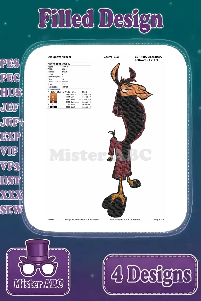 Disney Emperors New Groove Yzma As Cat Skinny Form Evil Sorceress Poses – Filled Embroidery Design
