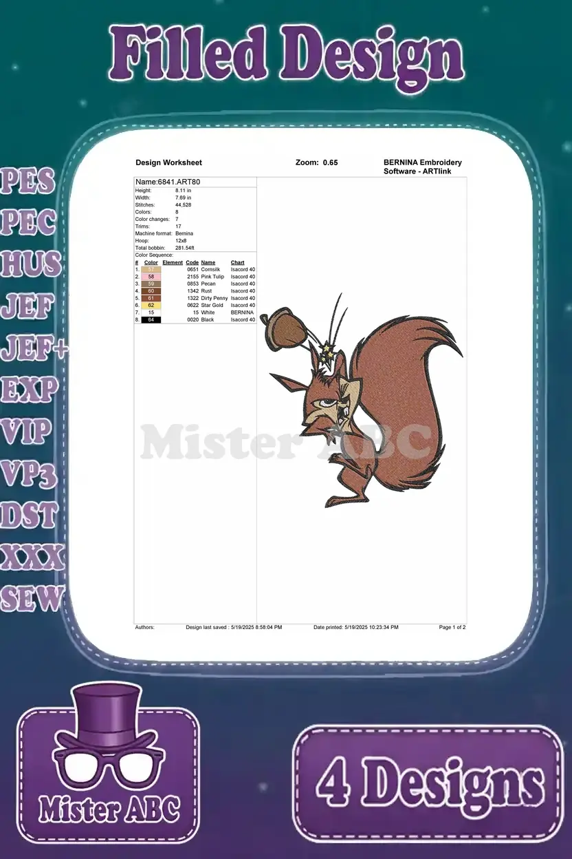 Disney Emperors New Groove Bucky Squirrel Kuzco Llama Kronk Angel Yzma Old Lady Bundle – Filled Embroidery Design