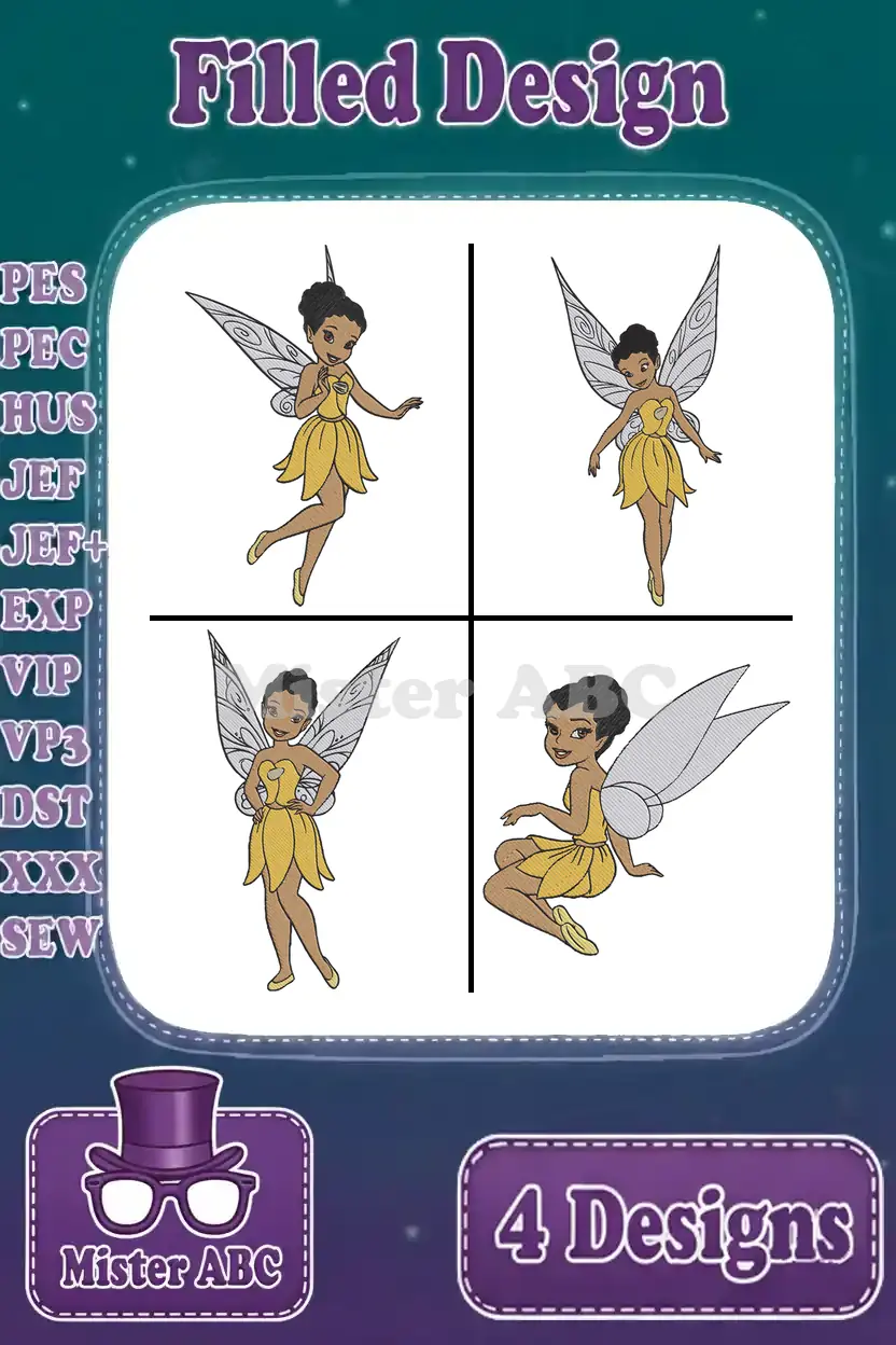 Disney Fairies Iridessa Light Talent Fairy Yellow Dress Various Bright Poses – Filled Embroidery Design – Instant Download