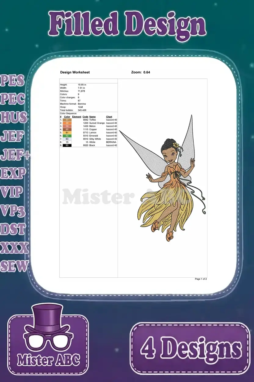 Disney Fairies Iridessa Light Talent Fairy Fawn Animal Talent With Butterflies Set – Filled Embroidery Design