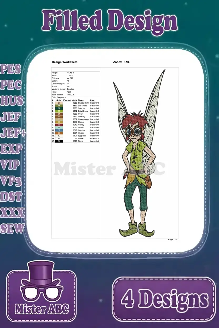 Disney Fairies Male Tinker Fairies Bobble Clank Moth And Garden Fairy Characters – Filled Embroidery Design