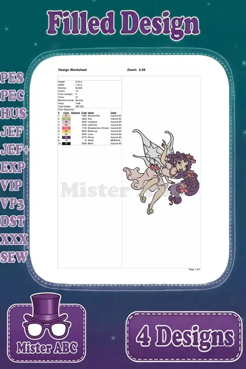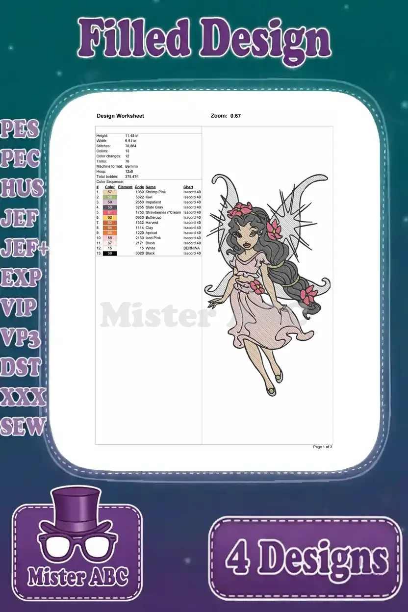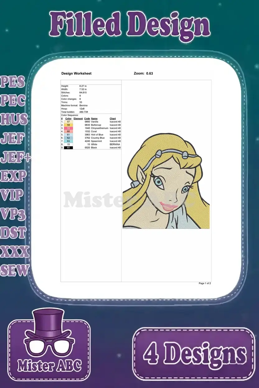 Disney Fairies Rosetta Garden Fairy Queen Clarion And Fairy Portrait Collection – Filled Embroidery Design