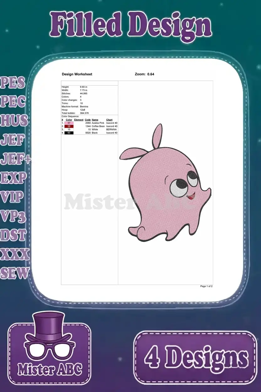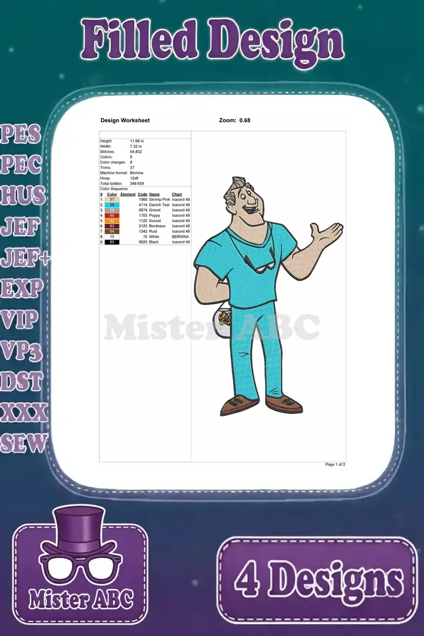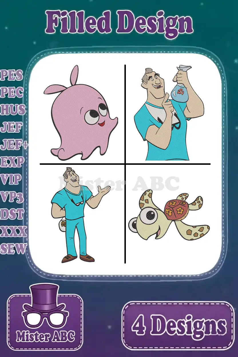 Disney Finding Nemo Pearl Octopus Dentist Dr Sherman Crush Sea Turtle Characters – Filled Embroidery Design