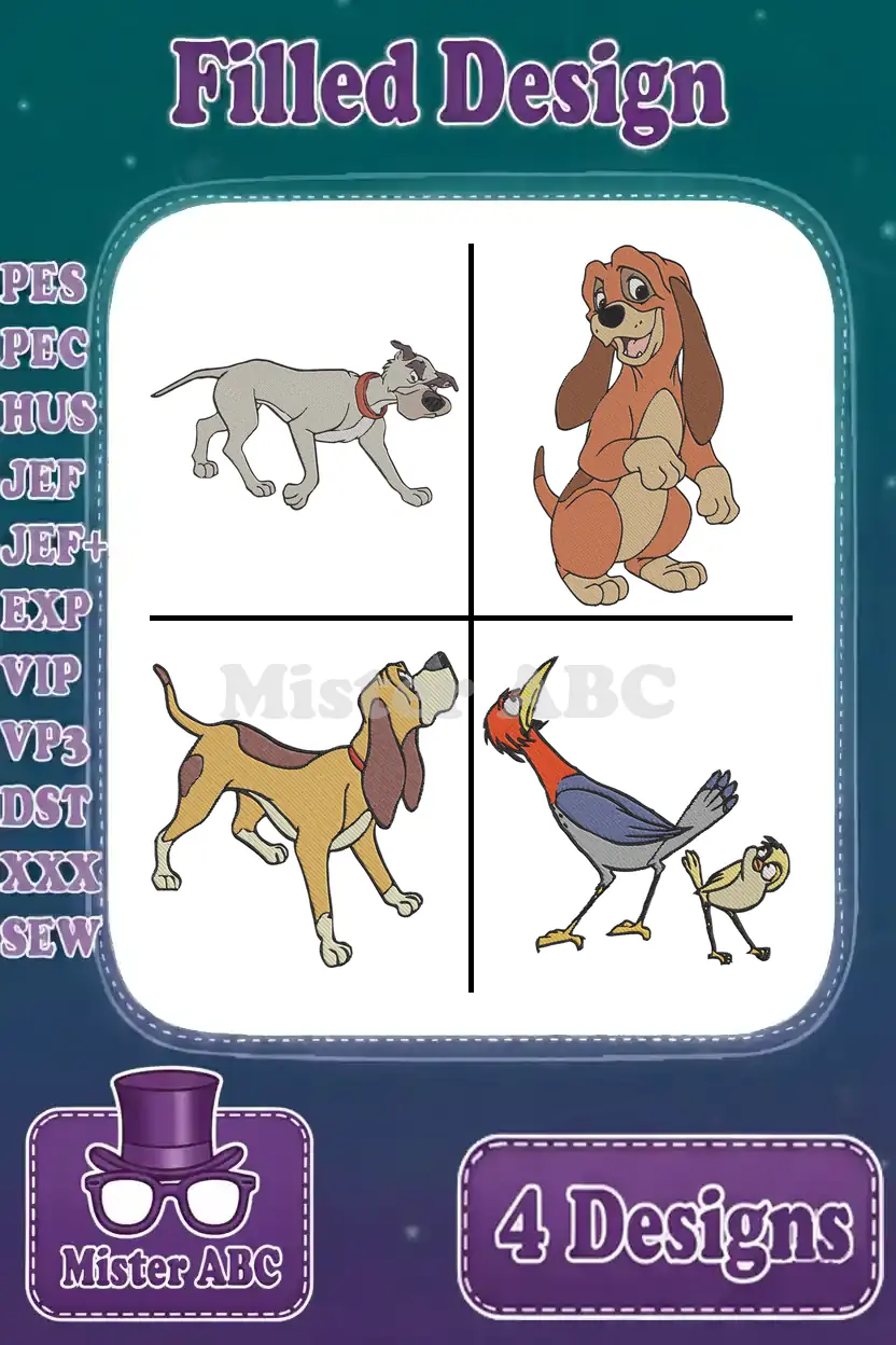 Disney Fox And Hound Chief Dog Copper Hound Woodpecker Dinky Boomer – Filled Embroidery Design