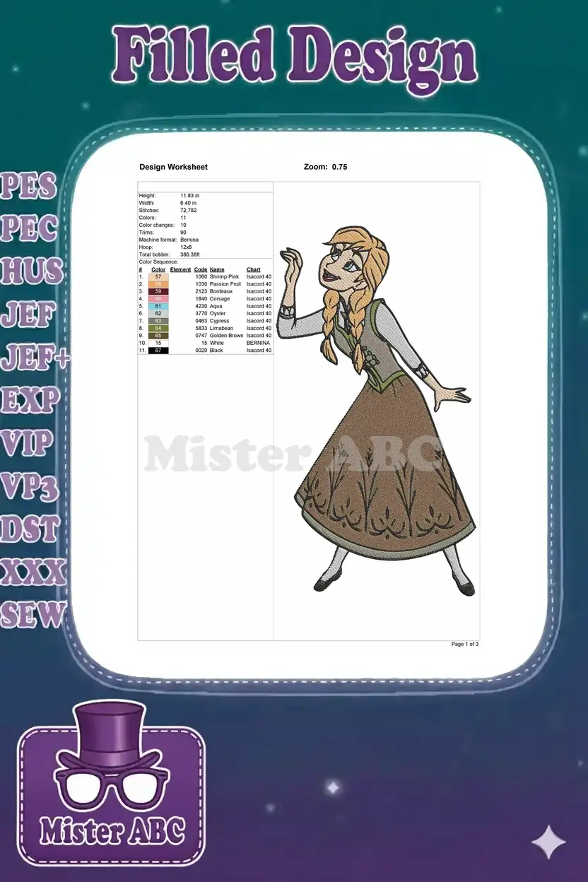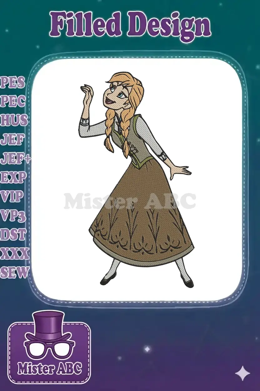 Disney Frozen Anna Braided Hair Character Embroidery Designs