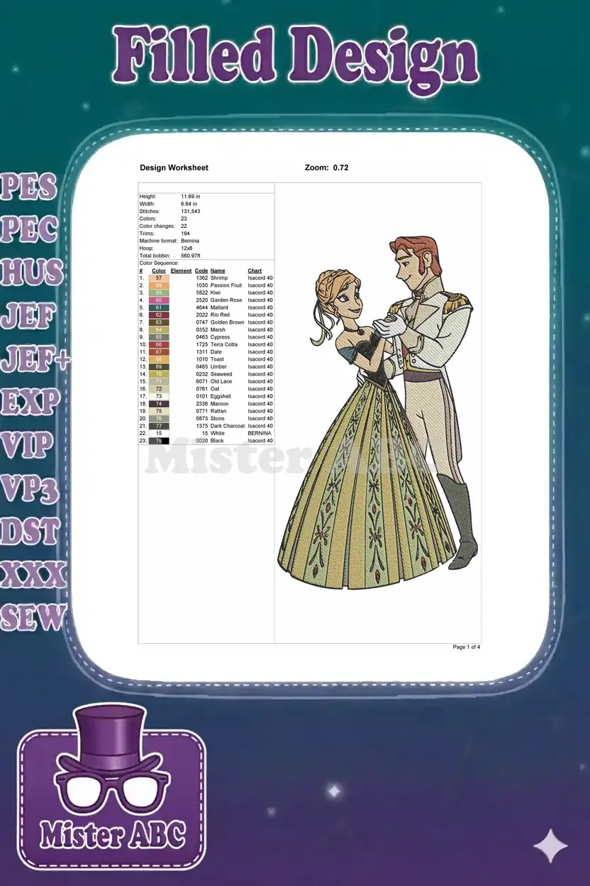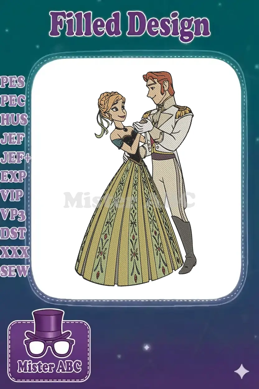 Disney Frozen Anna and Hans dancing couple embroidery designs