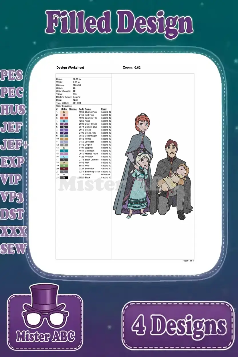 Disney Frozen Anna Kristoff Hans Coronation Ball Ice Harvesting Interactions – Filled Embroidery Design
