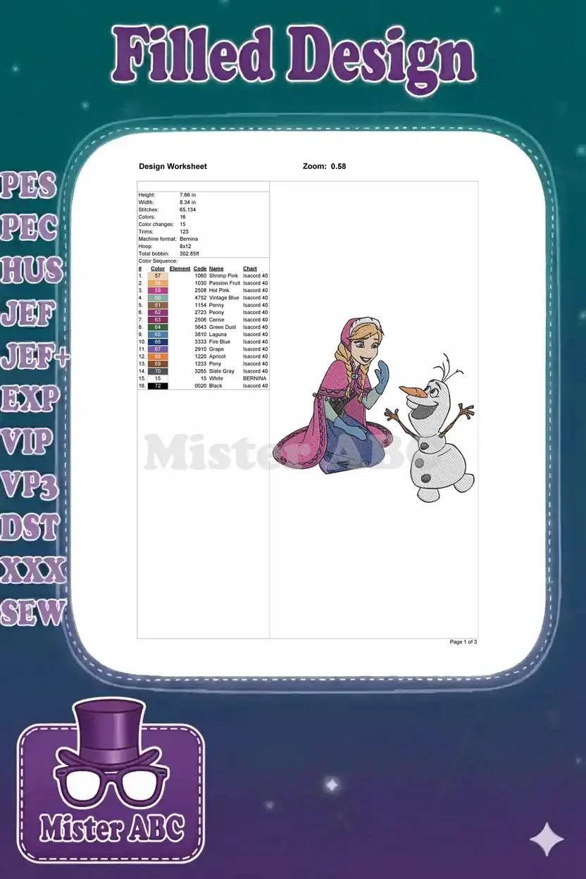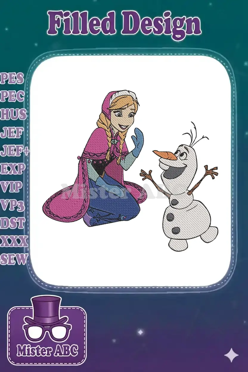 Disney Frozen Anna and Olaf smiling friendship embroidery designs