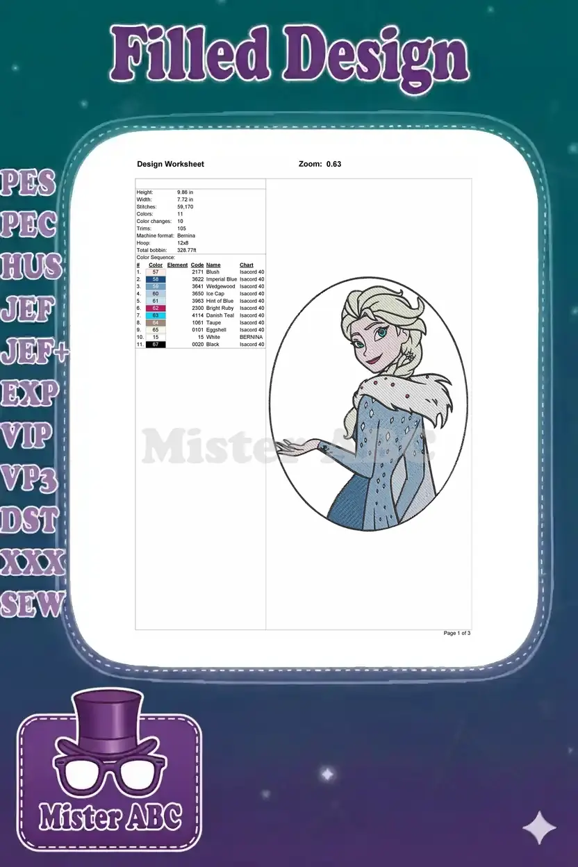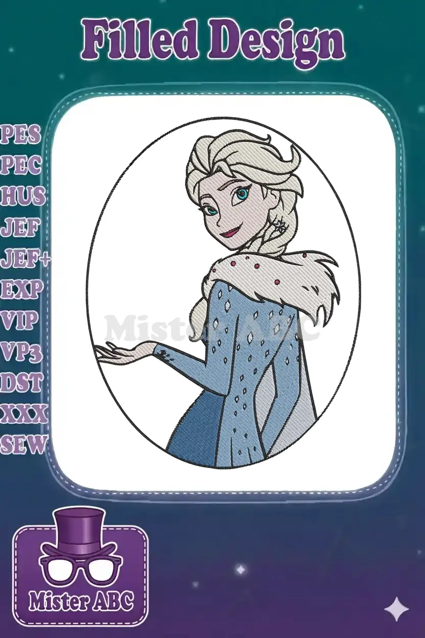 Disney Frozen Elsa Ice Queen blue dress embroidery designs