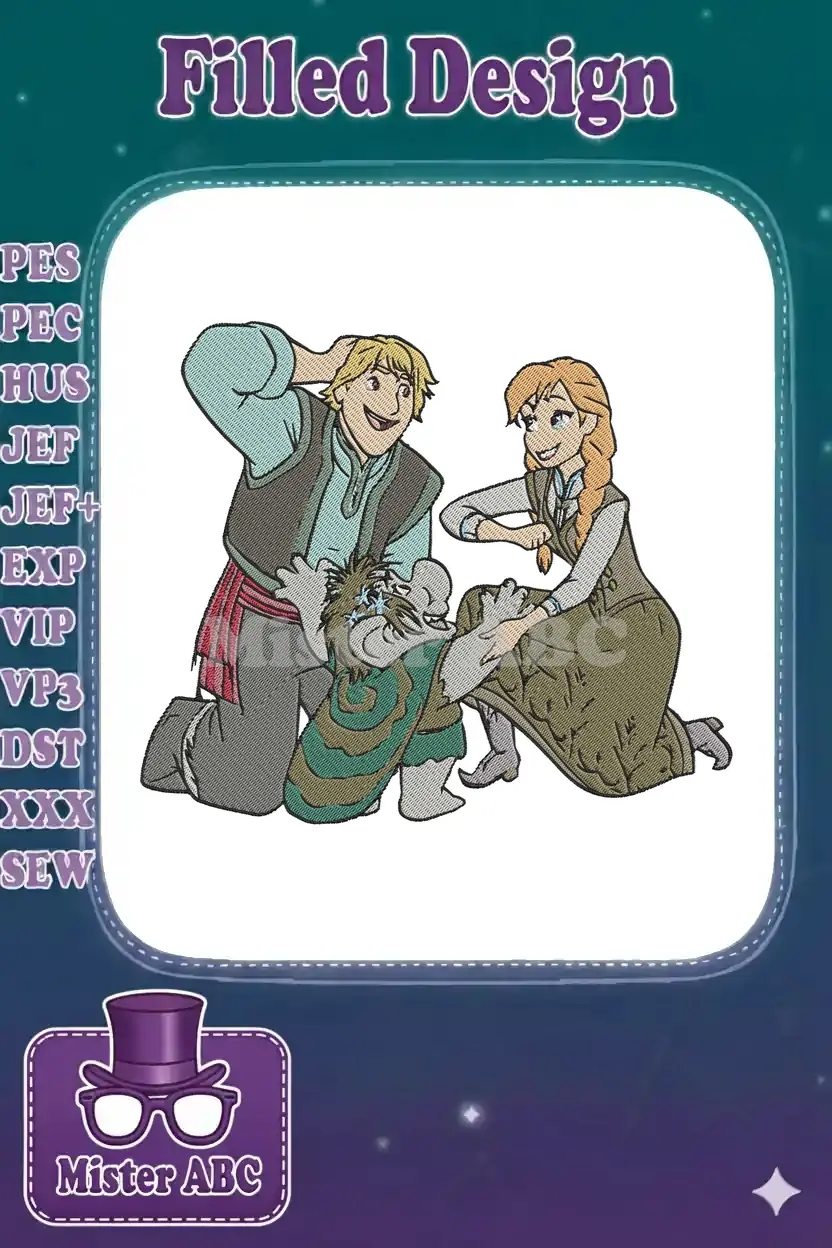 Disney Frozen Kristoff Anna caring for baby Sven embroidery designs