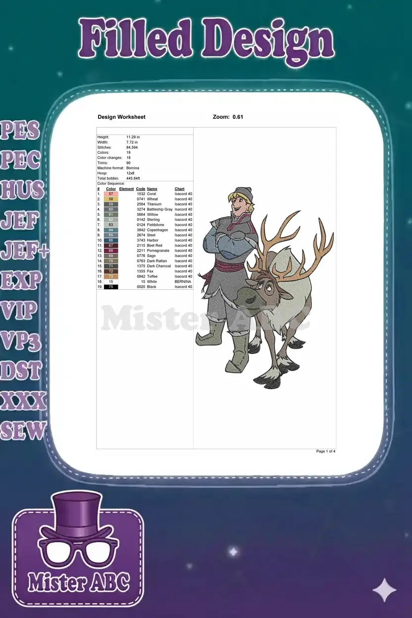 Disney Frozen Kristoff and Sven the Reindeer embroidery designs