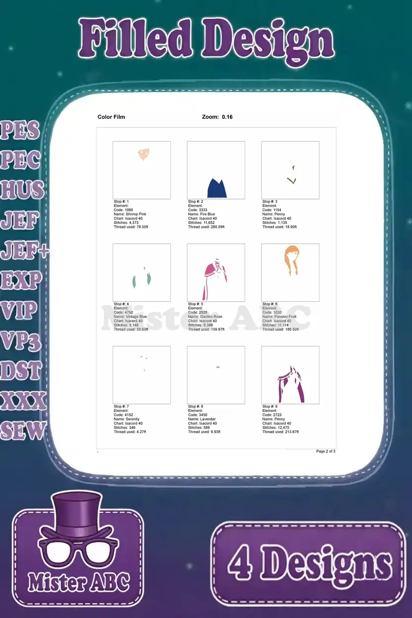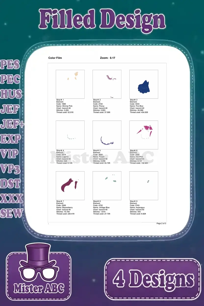 | Stitches | Colors | Thread Changes |