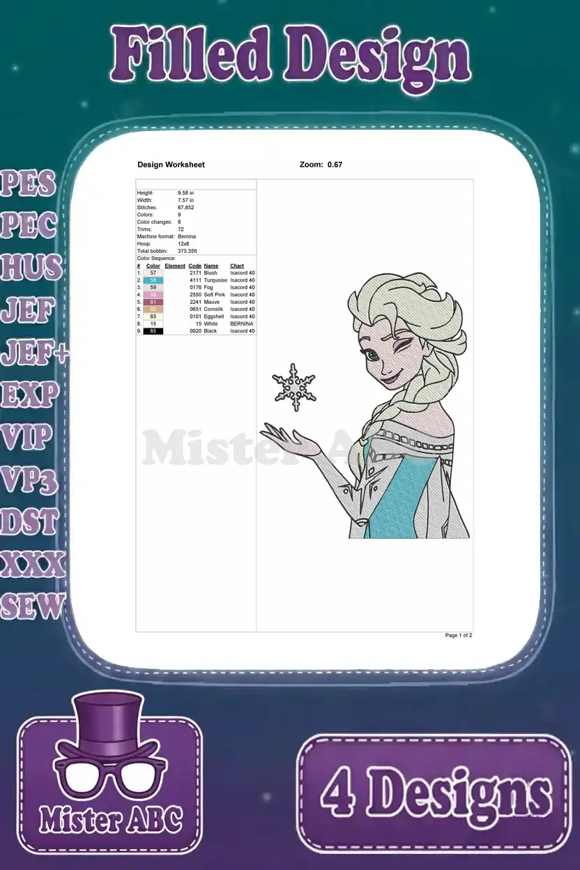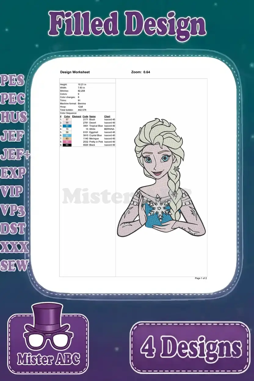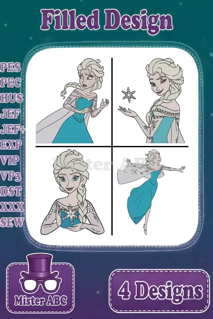 Disney Frozen Queen Elsa Ice Dress Snowflake Magic Graceful Ice Queen Poses Designs – Filled Embroidery Design