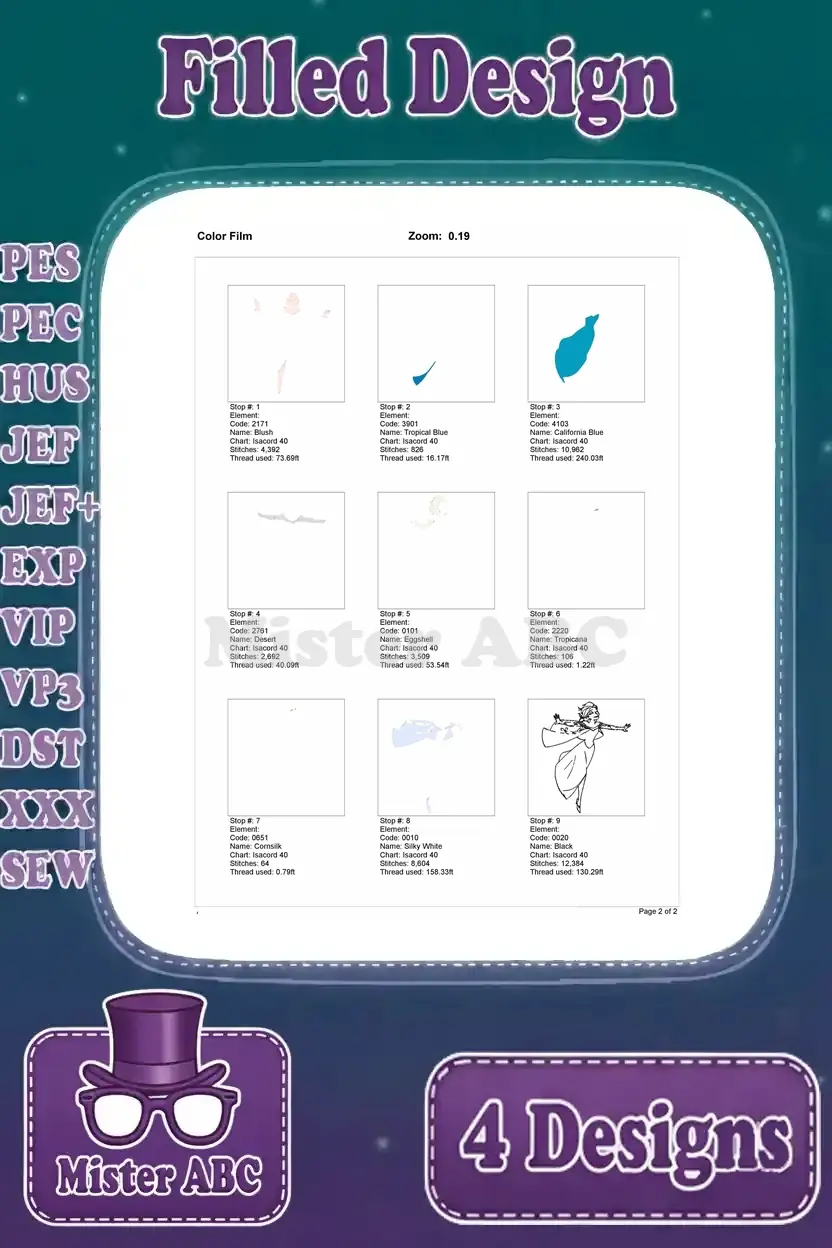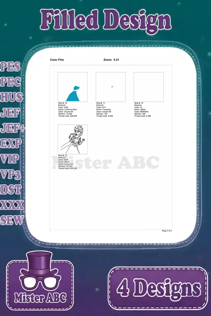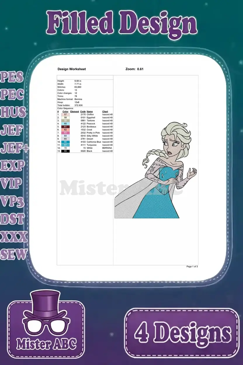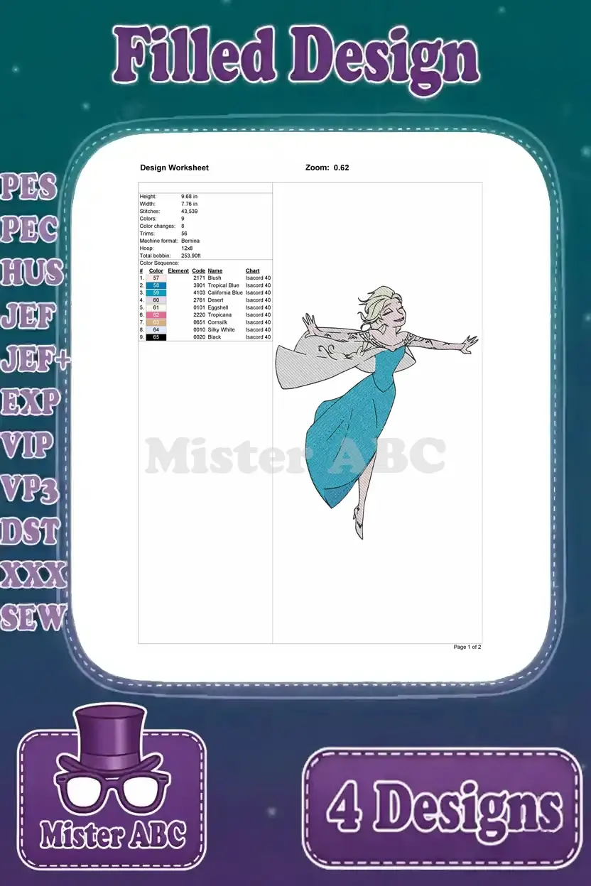 Disney Frozen Queen Elsa Ice Dress Snowflake Magic Graceful Ice Queen Poses Designs – Filled Embroidery Design