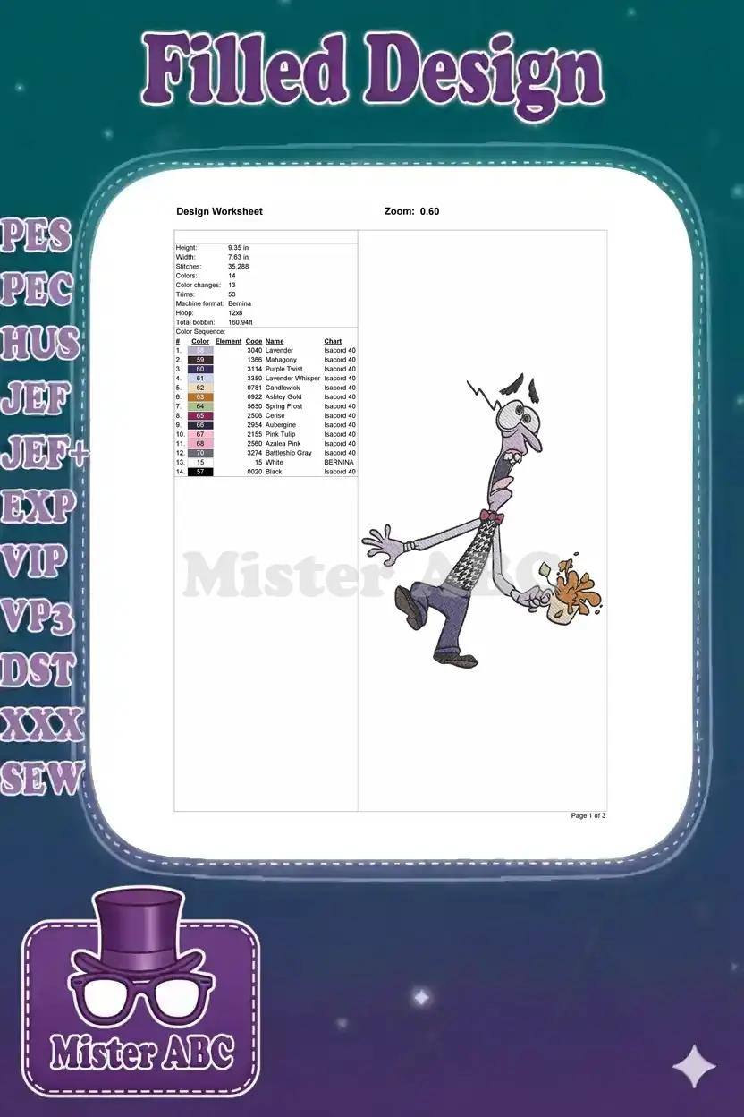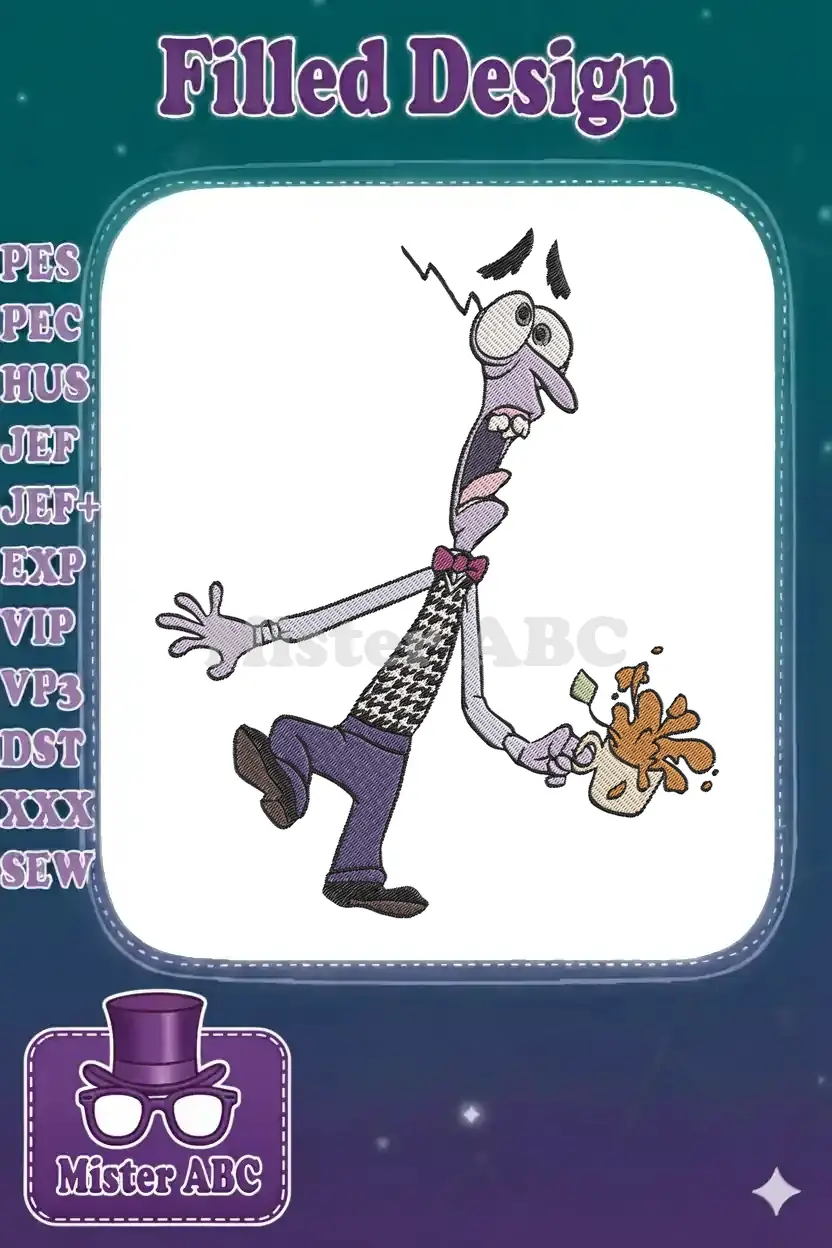 Disney Inside Out Fear Character Scared Spilling Drink Embroidery Designs