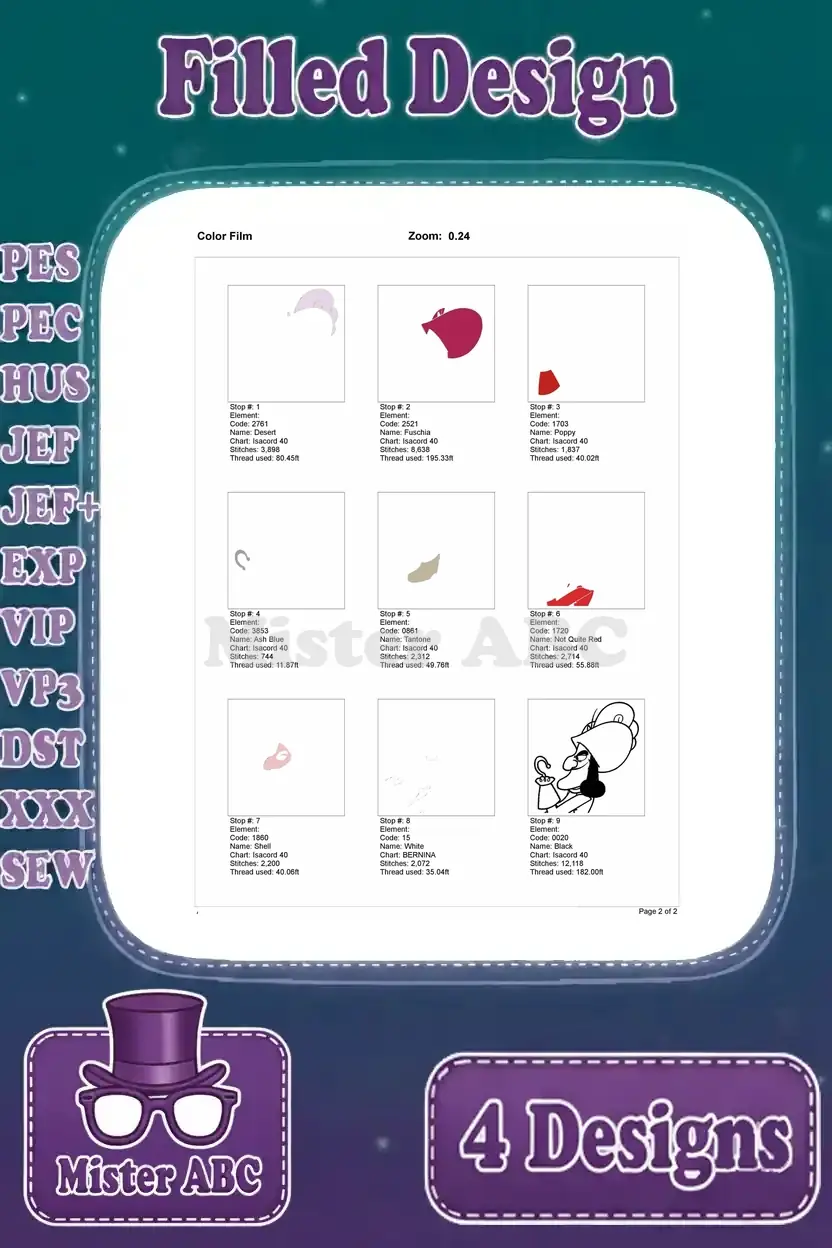 | Stitches | Colors | Thread Changes |