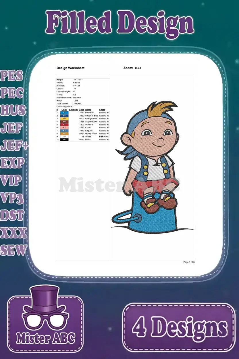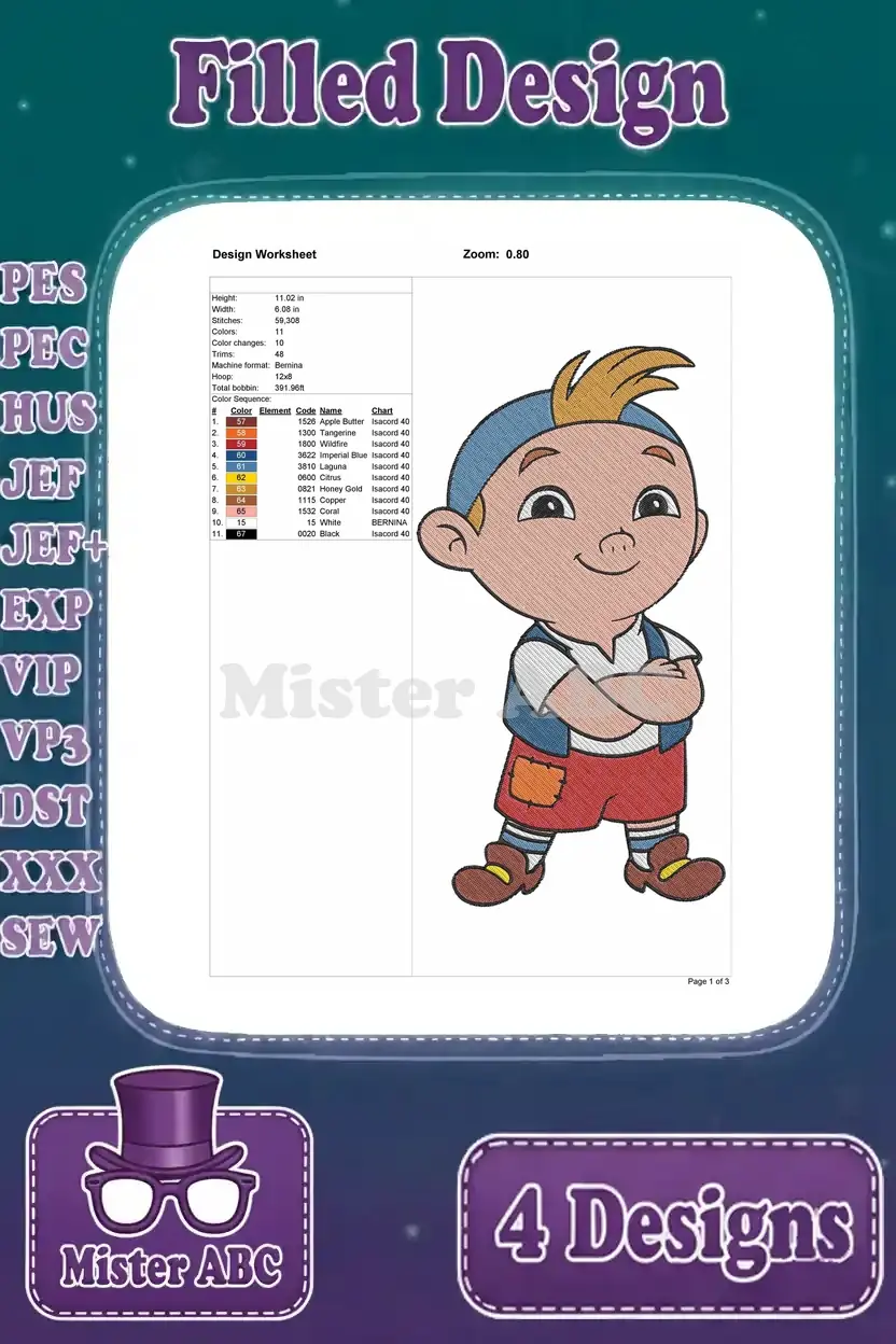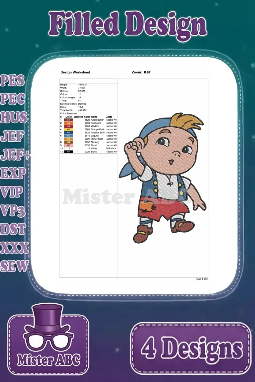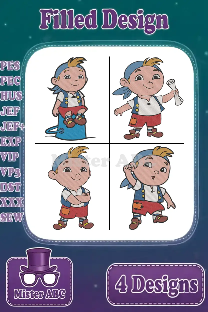 Disney Jake Never Land Pirates Jake Young Pirate Leader Map Treasure Poses Designs – Filled Embroidery Design