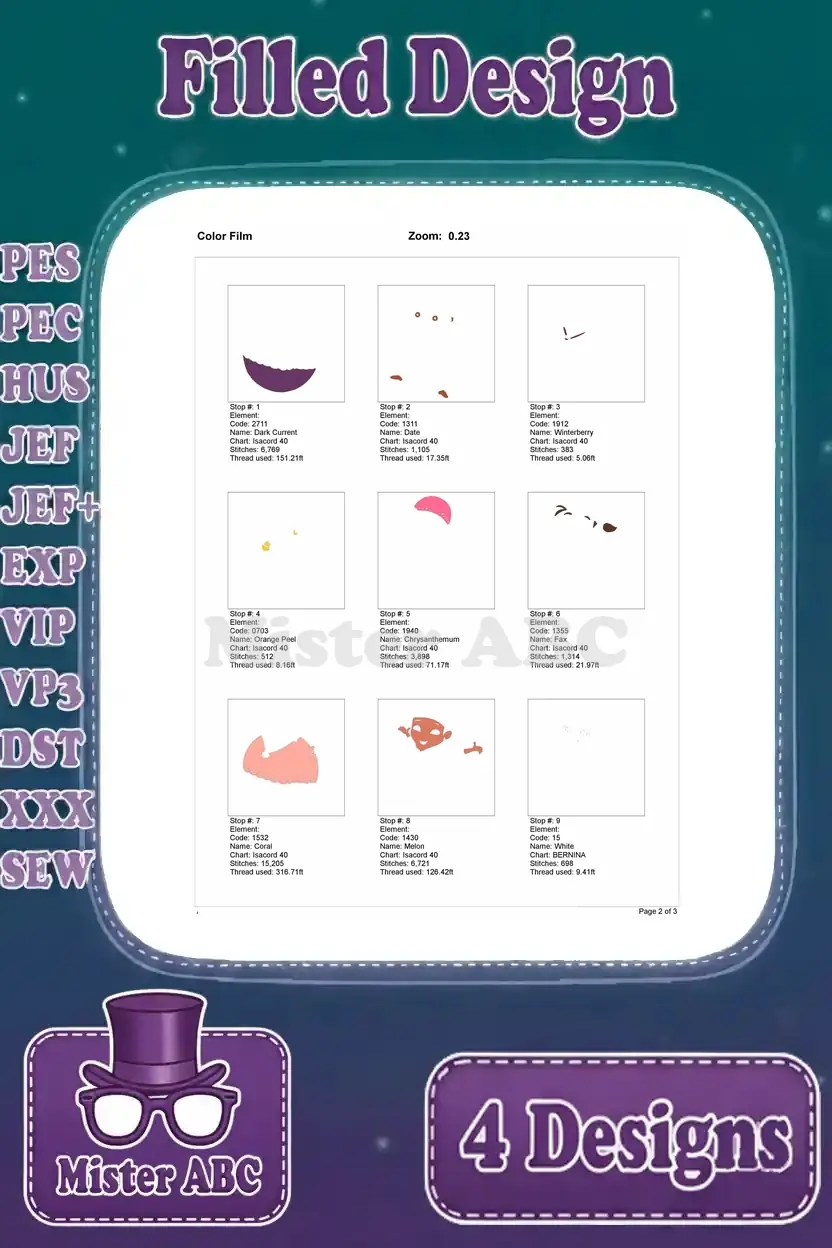 | Stitches | Colors | Thread Changes |
