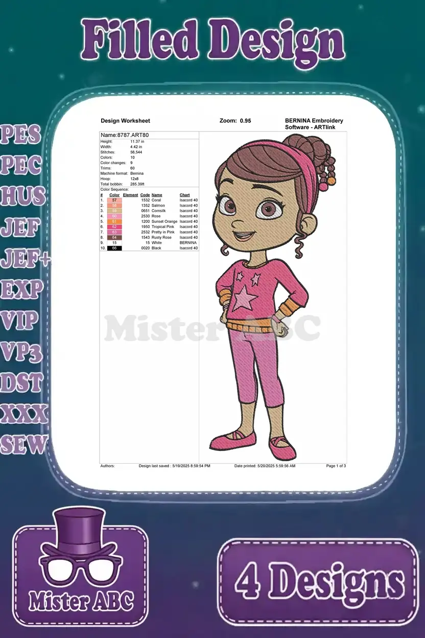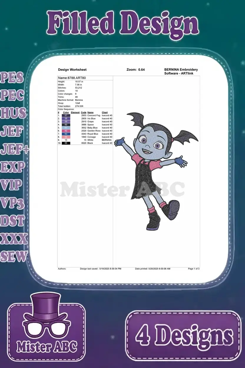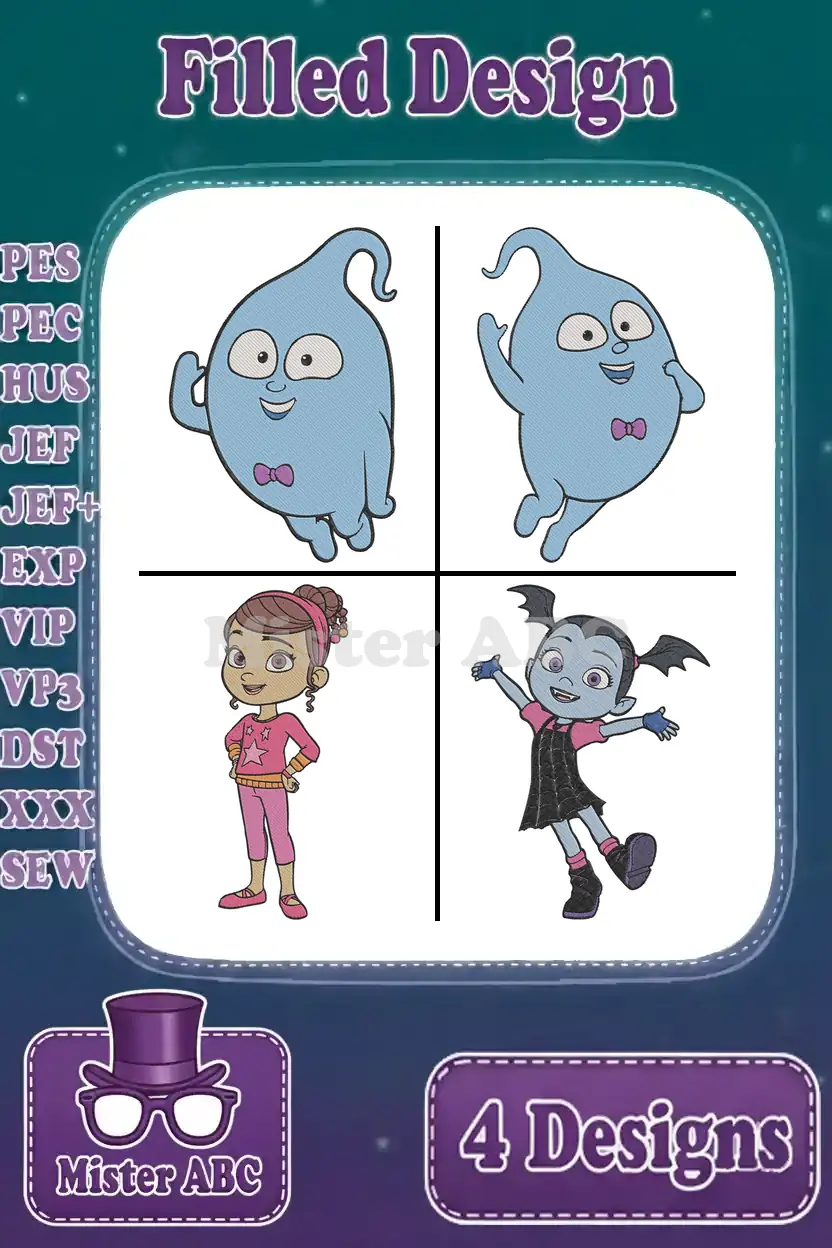 Disney Junior Vampirina Demi The Ghost Vee Hauntley Human Form Spooky Friends Collection – Filled Embroidery Design