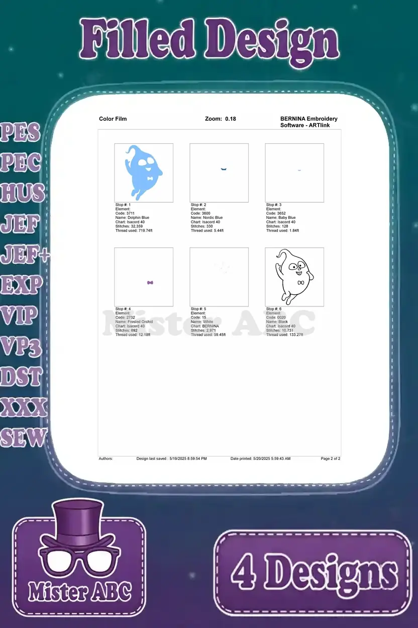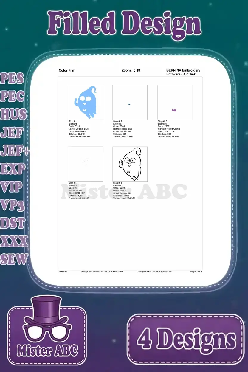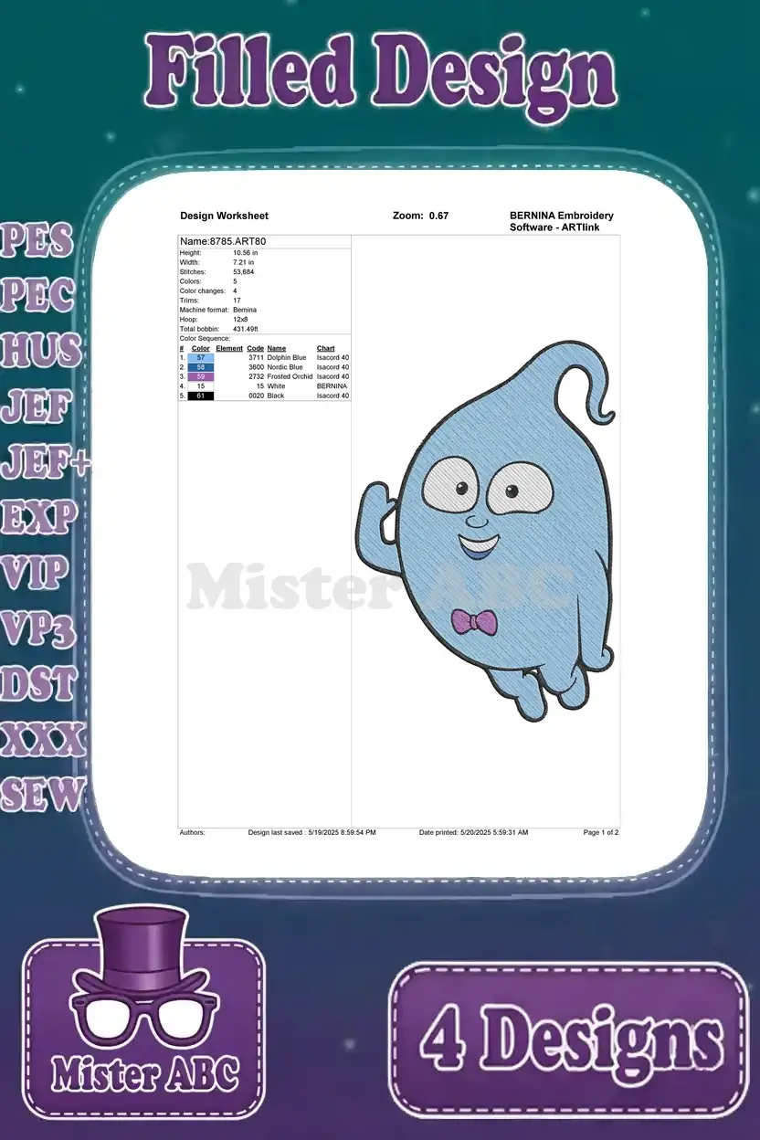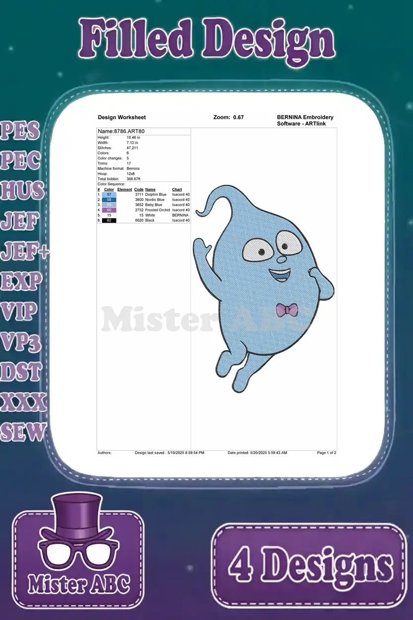 Disney Junior Vampirina Demi The Ghost Vee Hauntley Human Form Spooky Friends Collection – Filled Embroidery Design