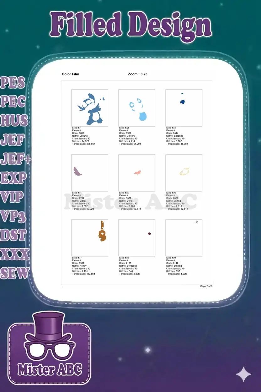 | Stitches | Colors | Thread Changes |