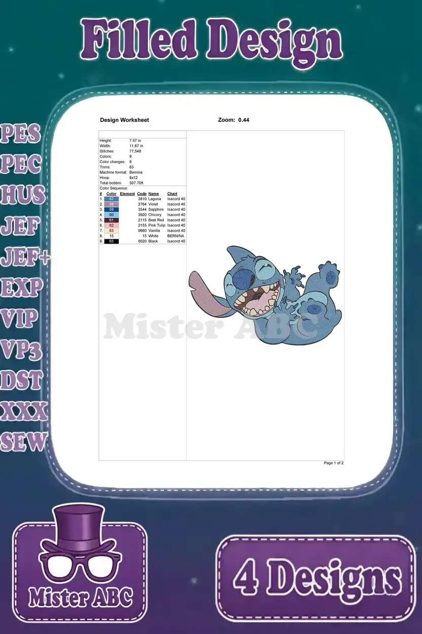 Disney Lilo Stitch Experiment 626 Alien Form Lilo With Ducks Red Dress Bundle – Filled Embroidery Design