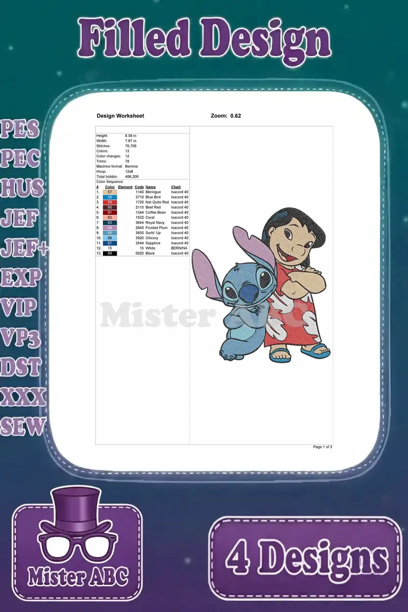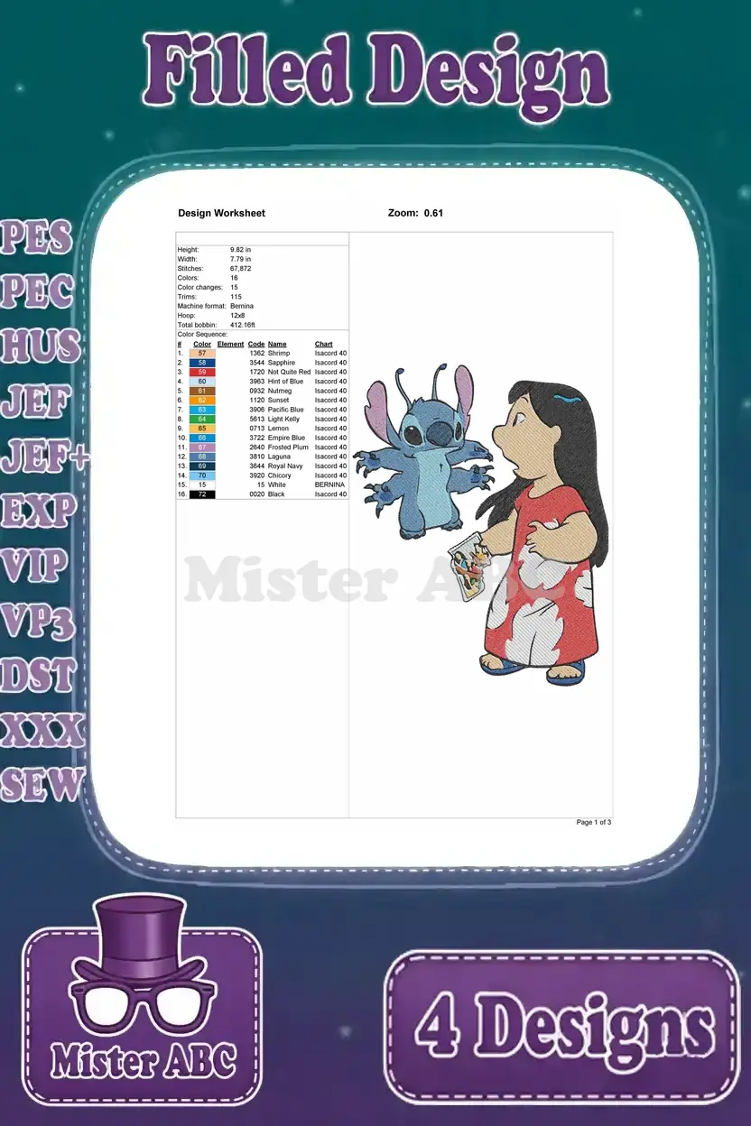 Disney Lilo Stitch Happy Alien Lilo In Red Dress David Kawena Surfer Designs – Filled Embroidery Design
