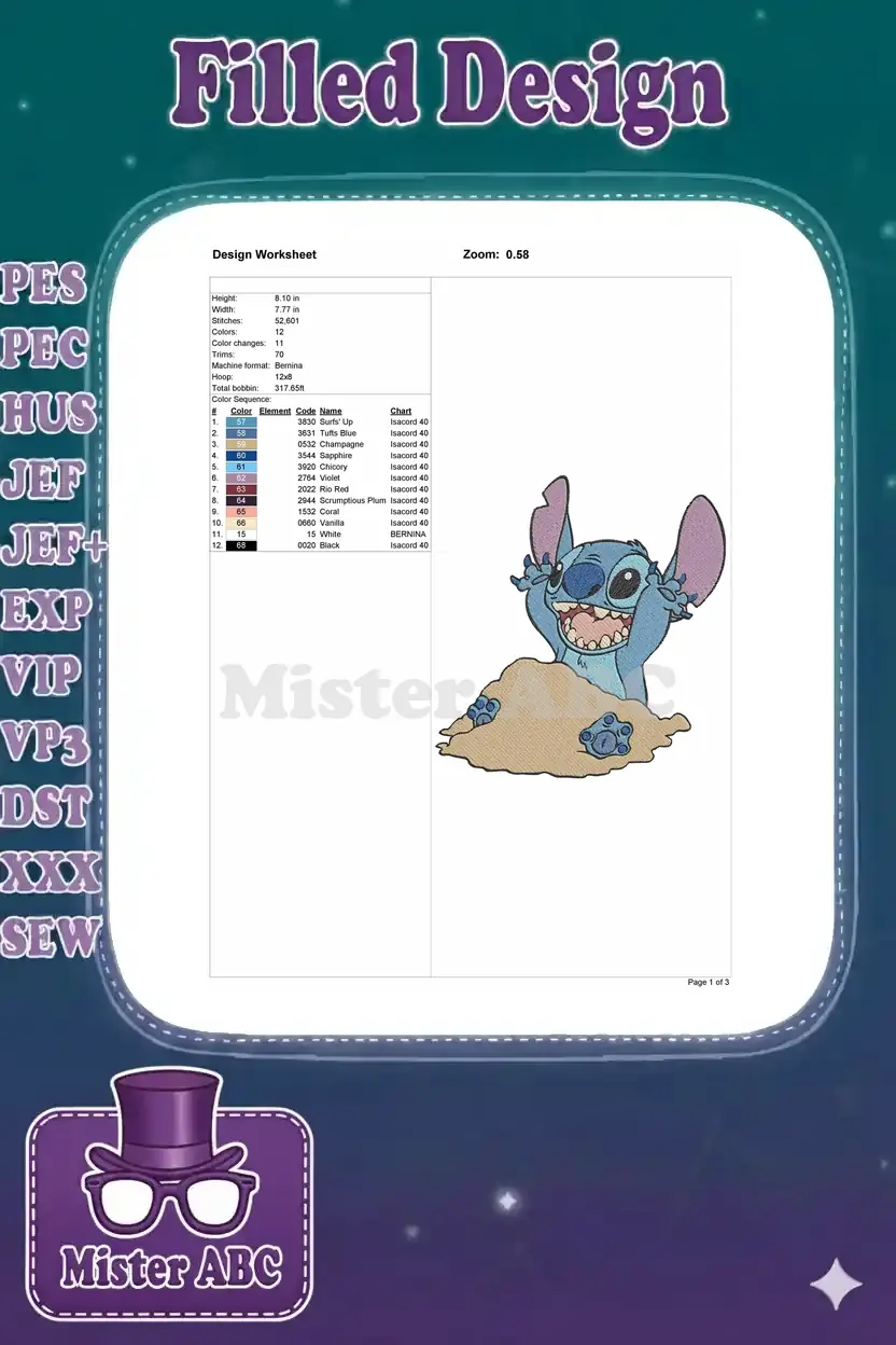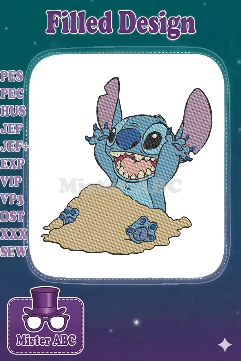 Disney Lilo Stitch Peeking From Sand Happy Embroidery Designs