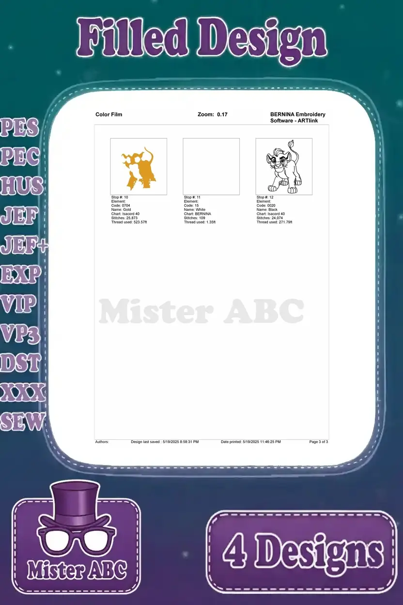 Disney Lion Guard Fuli The Cheetah Kion Lion Prince Fastest And Fiercest Bundle – Filled Embroidery Design