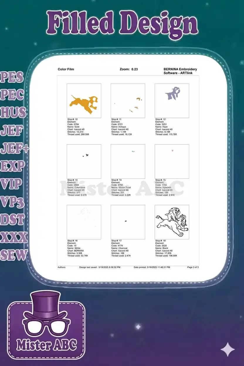 | Stitches | Colors | Thread Changes |