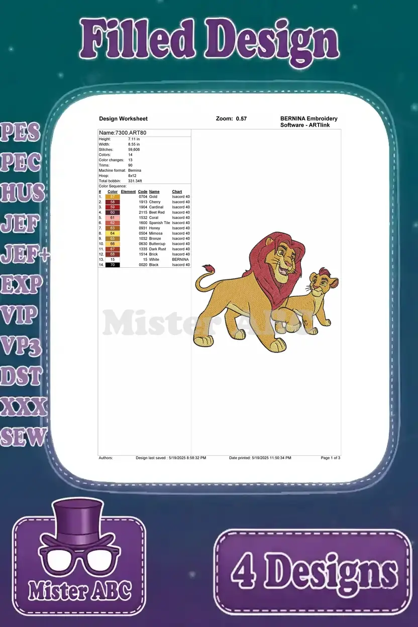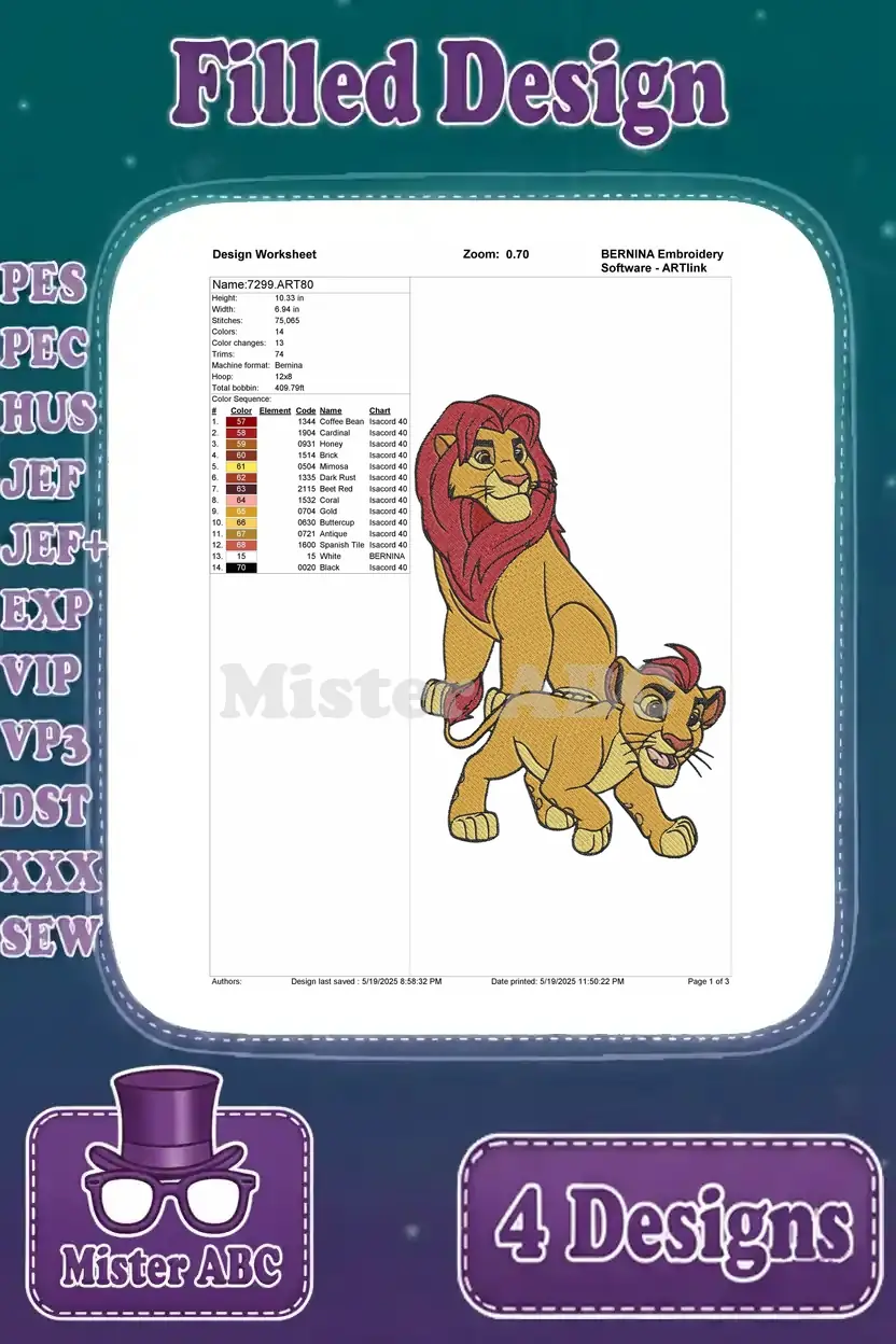 Disney Lion Guard Ono Egret Simba King With Kion Son Pride Lands Royalty – Filled Embroidery Design