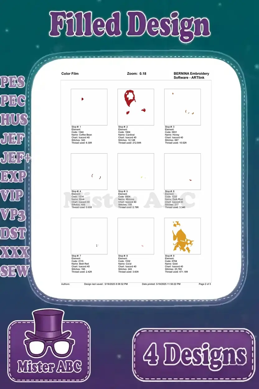 | Stitches | Colors | Thread Changes |
