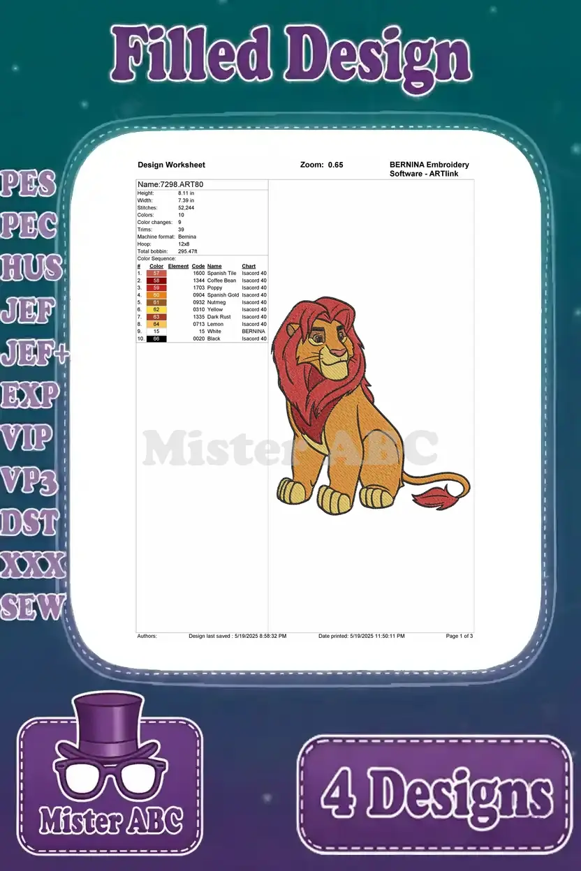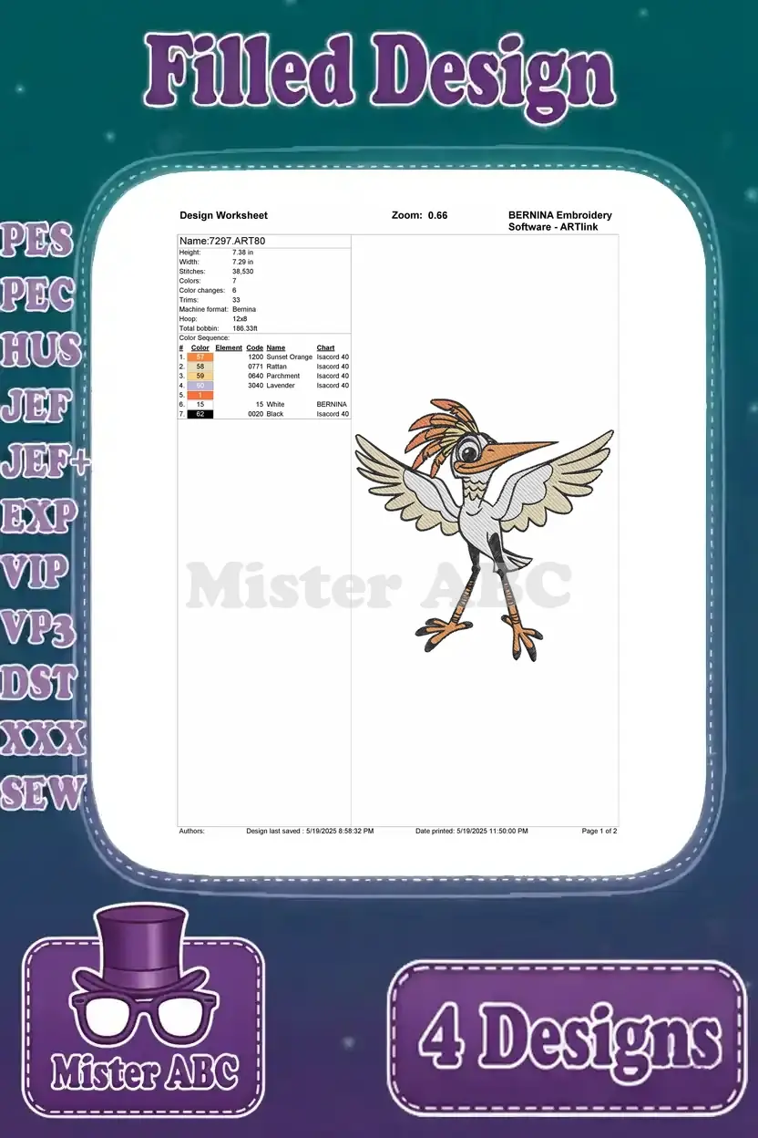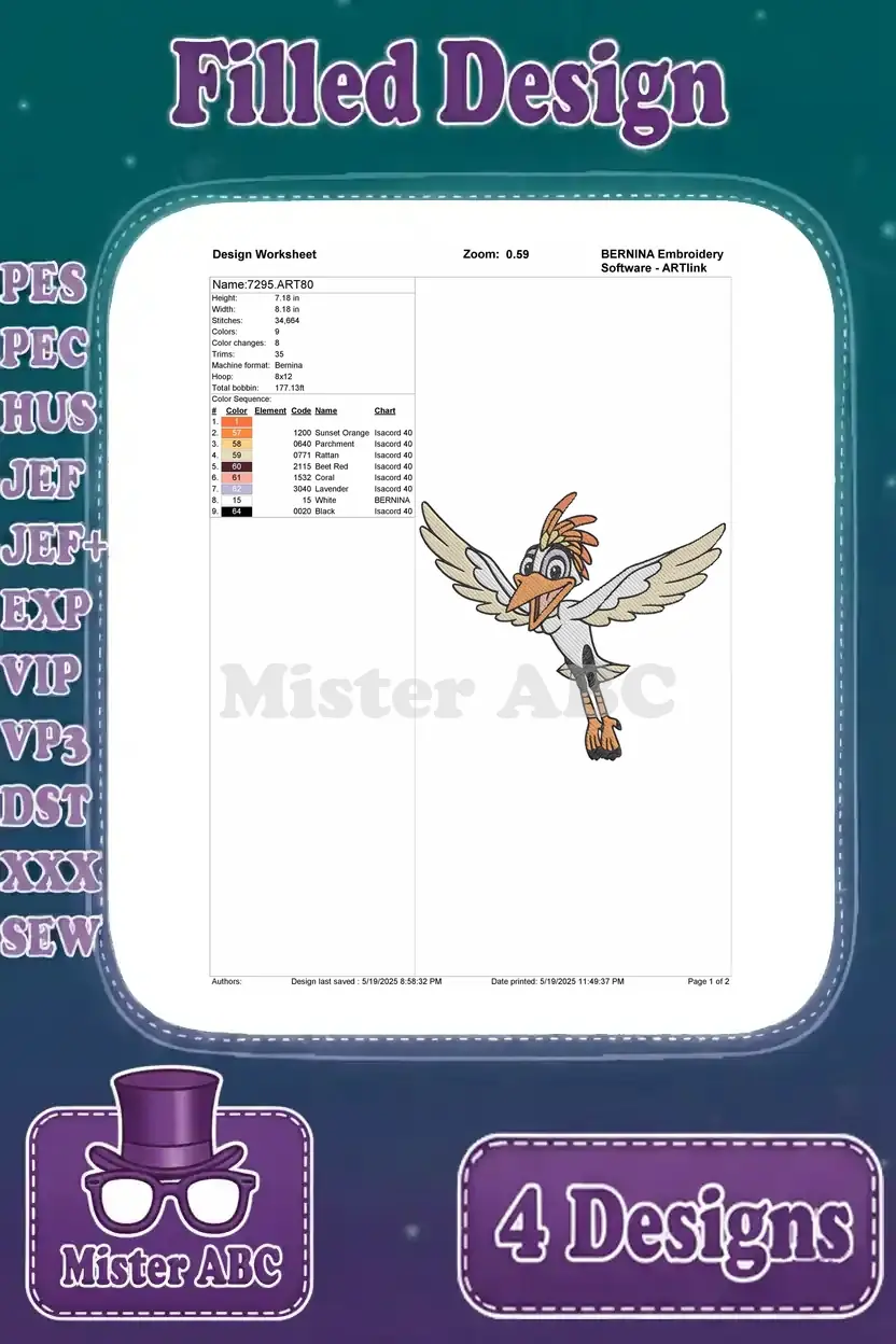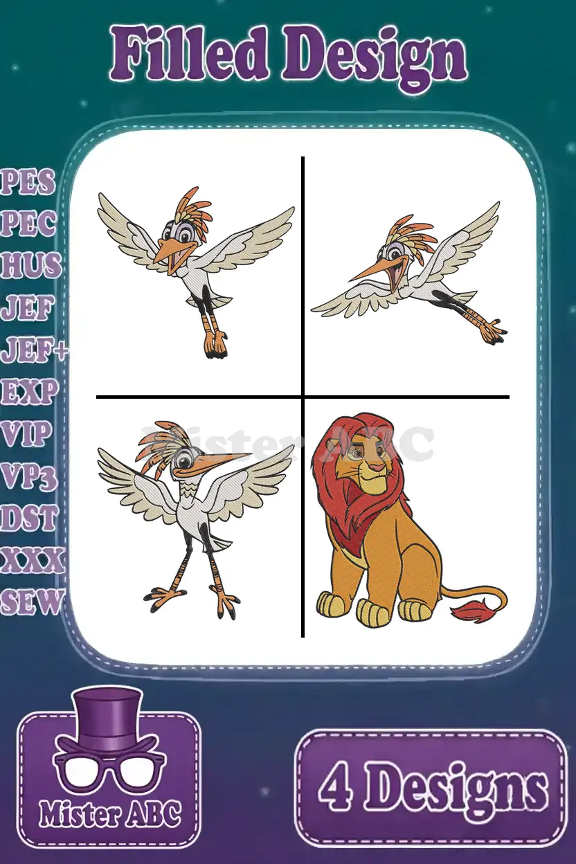 Disney Lion Guard Ono The Egret Keenest Of Sight Simba King Lion Flying Designs – Filled Embroidery Design