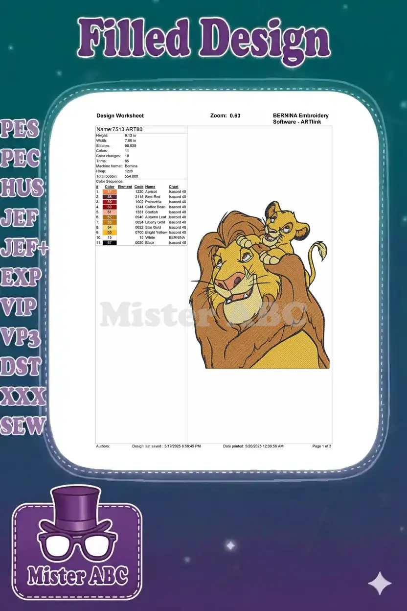 Disney Lion King Mufasa and Simba Playful Embroidery Designs