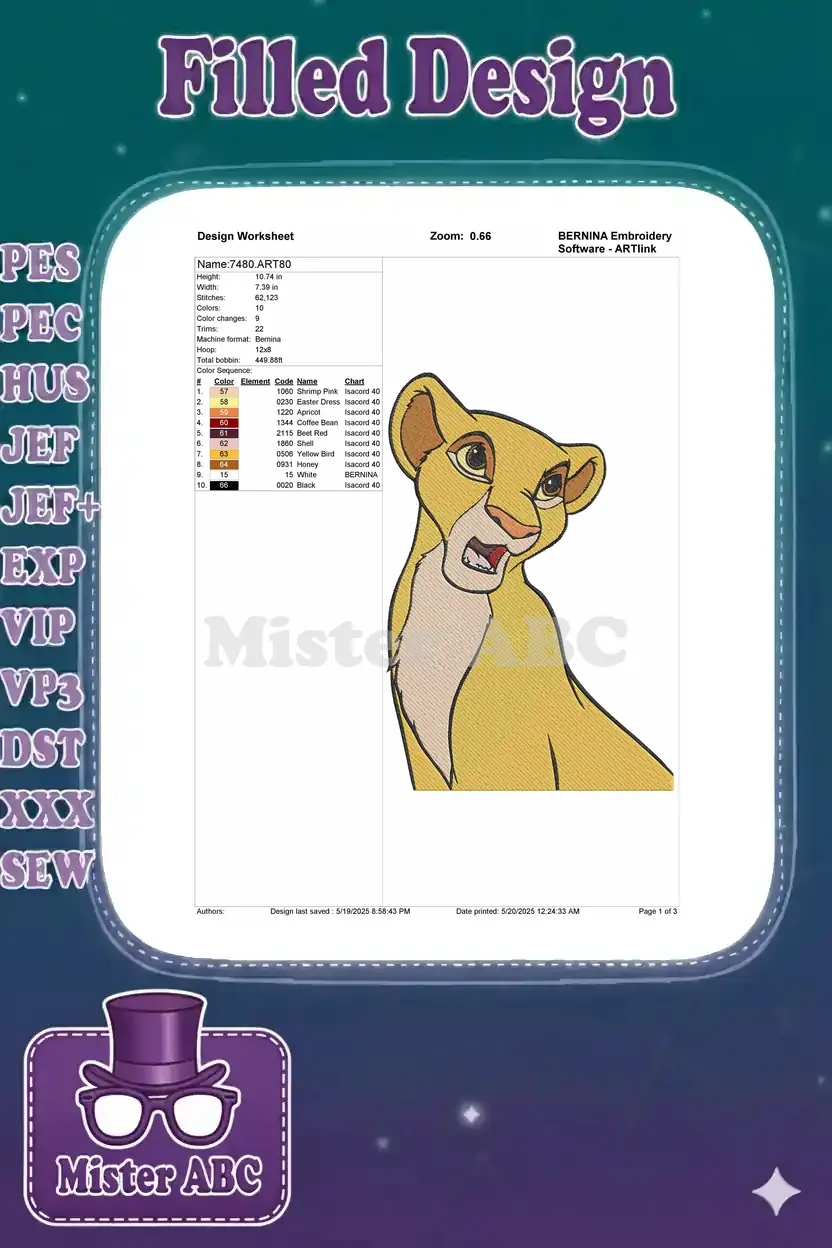 Disney Lion King Nala cub surprised face embroidery designs