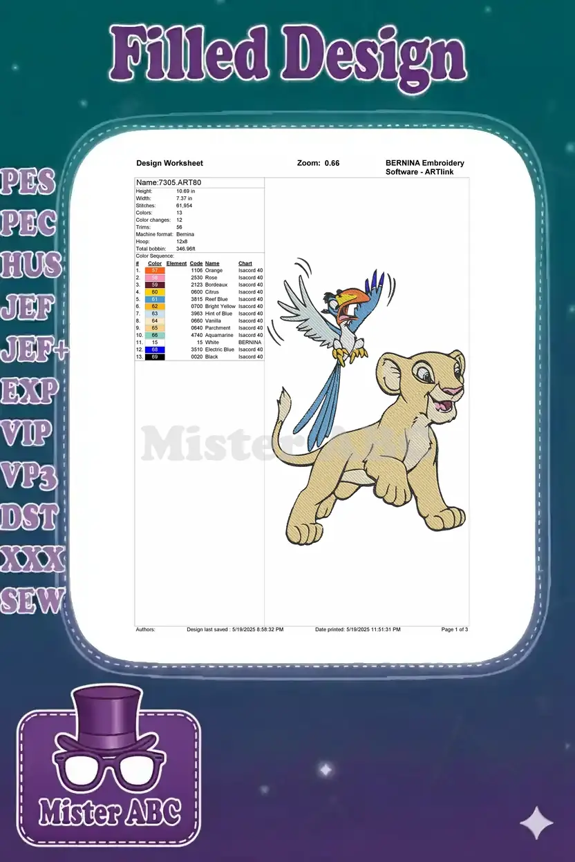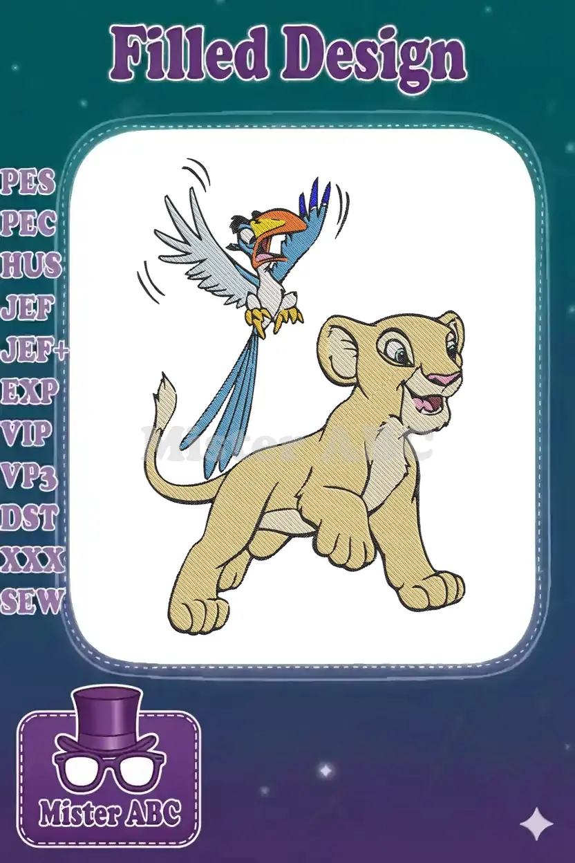 Disney Lion King Nala and Zazu playful embroidery designs