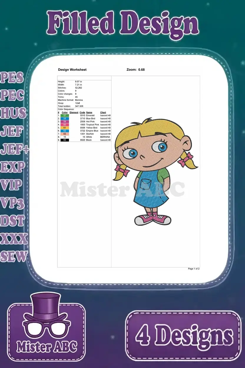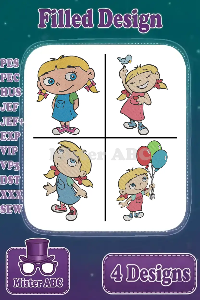 Discover four delightful Annie embroidery designs, perfect for adding a touch of adventure to any project. These filled designs offer vibrant detail and easy stitching for fans of all ages.